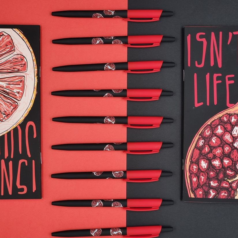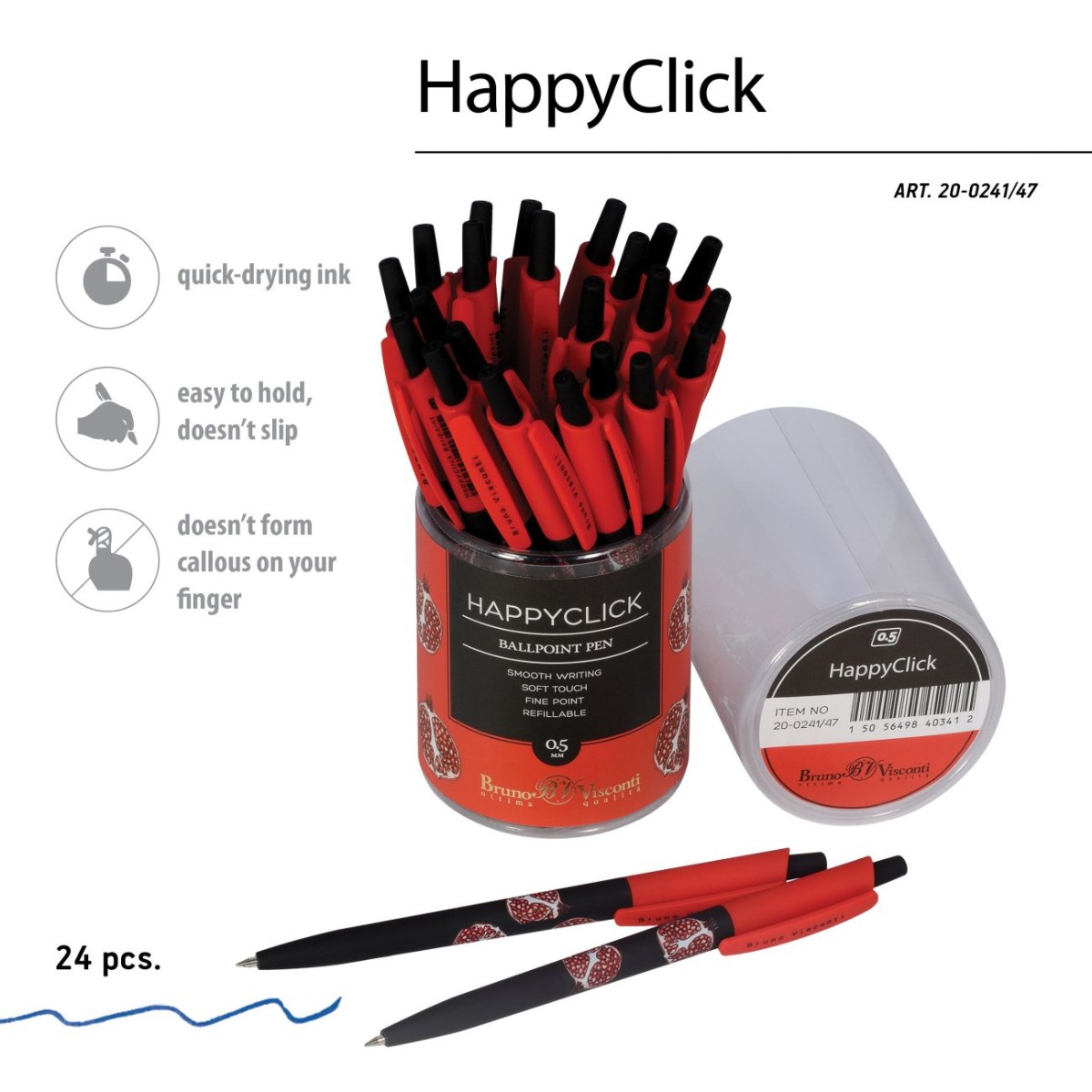 Ручка шариковая синяя BV HappyClick Fresh&Fruity Гранат 0,5мм принт