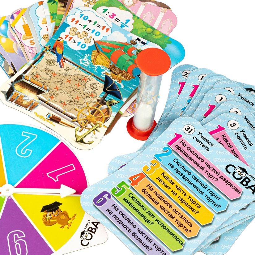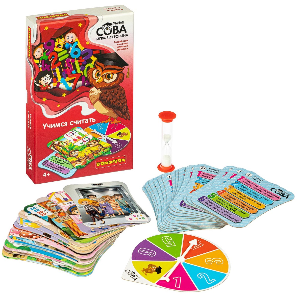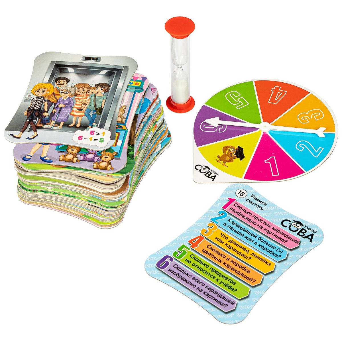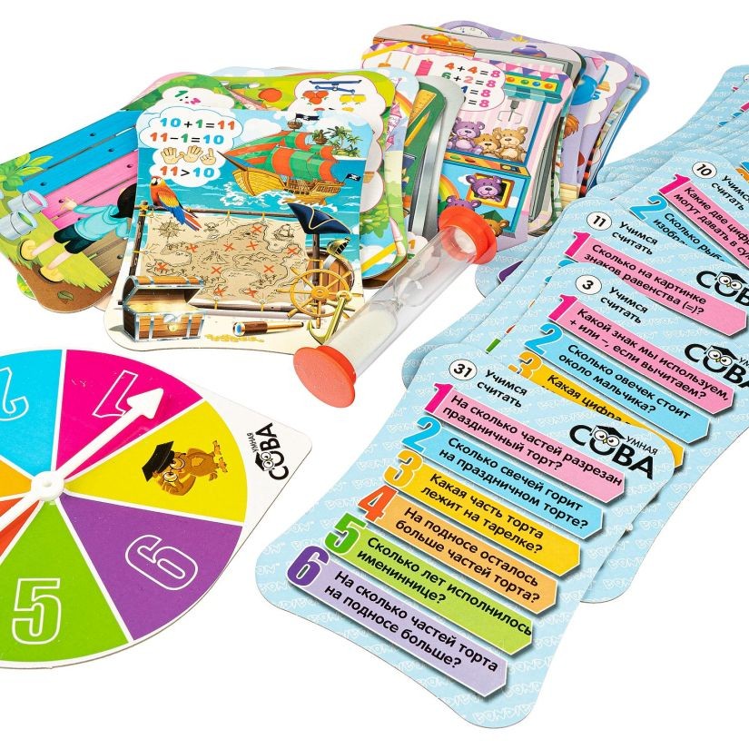 "Умная Сова" - викторина, которая учит логически мыслить и способствует развитию зрительной памяти, скорости мышления, усидчивости, внимательности и наблюдательности. Данная игра разработана на базе авторской методики обучения, предполагающей новую форму подачи материала и способствующей усвоению важных для ребёнка знаний в игровой форме. Ваш ребенок будет не бояться, а любить математику и поймет, что эта "сложная наука" на самом деле интересная, занимательная, удивительная и красивая! Правила игры содержат три уровня сложности и обеспечивают индивидуальный темп, объём и сложность игры в зависимости от возраста и возможностей игроков. Карточки можно также использовать в качестве своеобразного методического пособия, поскольку в них содержится следующая информация: обозначение и последовательность чисел от 1 до 10; арифметические действия; сравнение чисел - больше, меньше, столько же; представления о времени