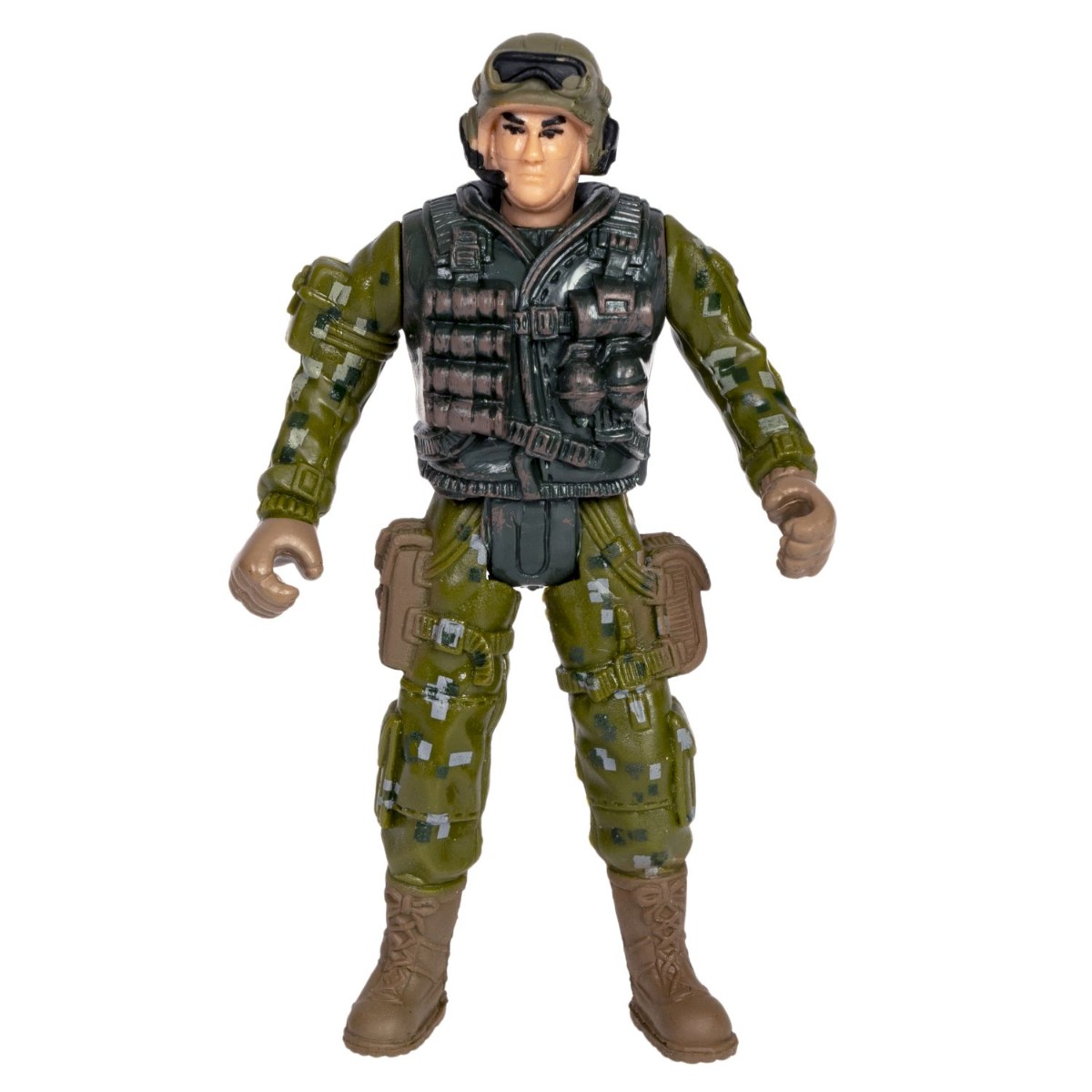 Игровой набор Армия "Настоящий боец" Bondibon – это игрушка, созданная для наших будущих защитников. Игрушка для мальчиков, которая наверняка понравится: фигурка солдата в шлеме с микрофоном и комплектом боевого оружия – образ детально продуман и детализирован, а компактный размер 10 см позволит брать бойца с собой на прогулку, в детский сад и путешествие. Можно придумать множество игр на военную тематику.