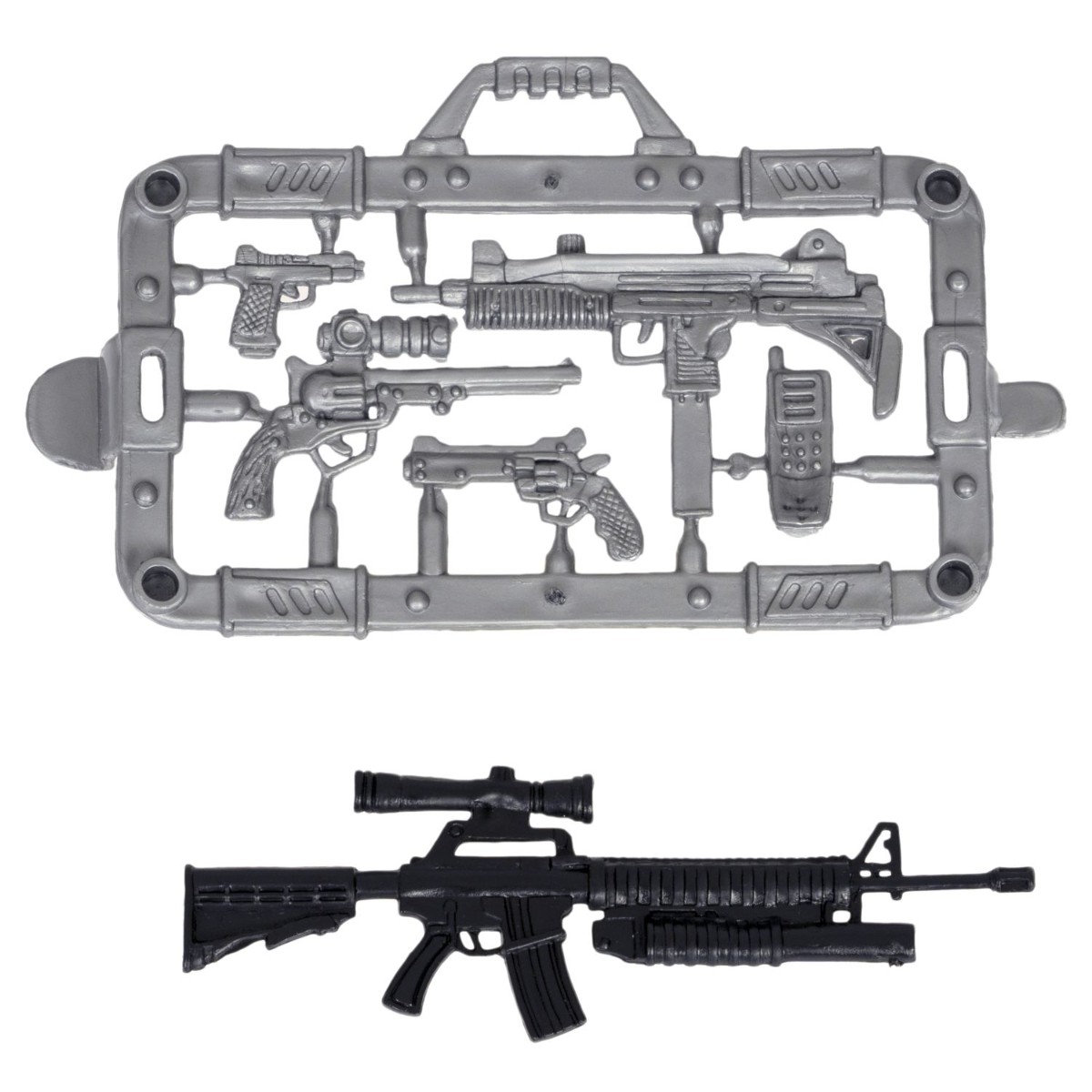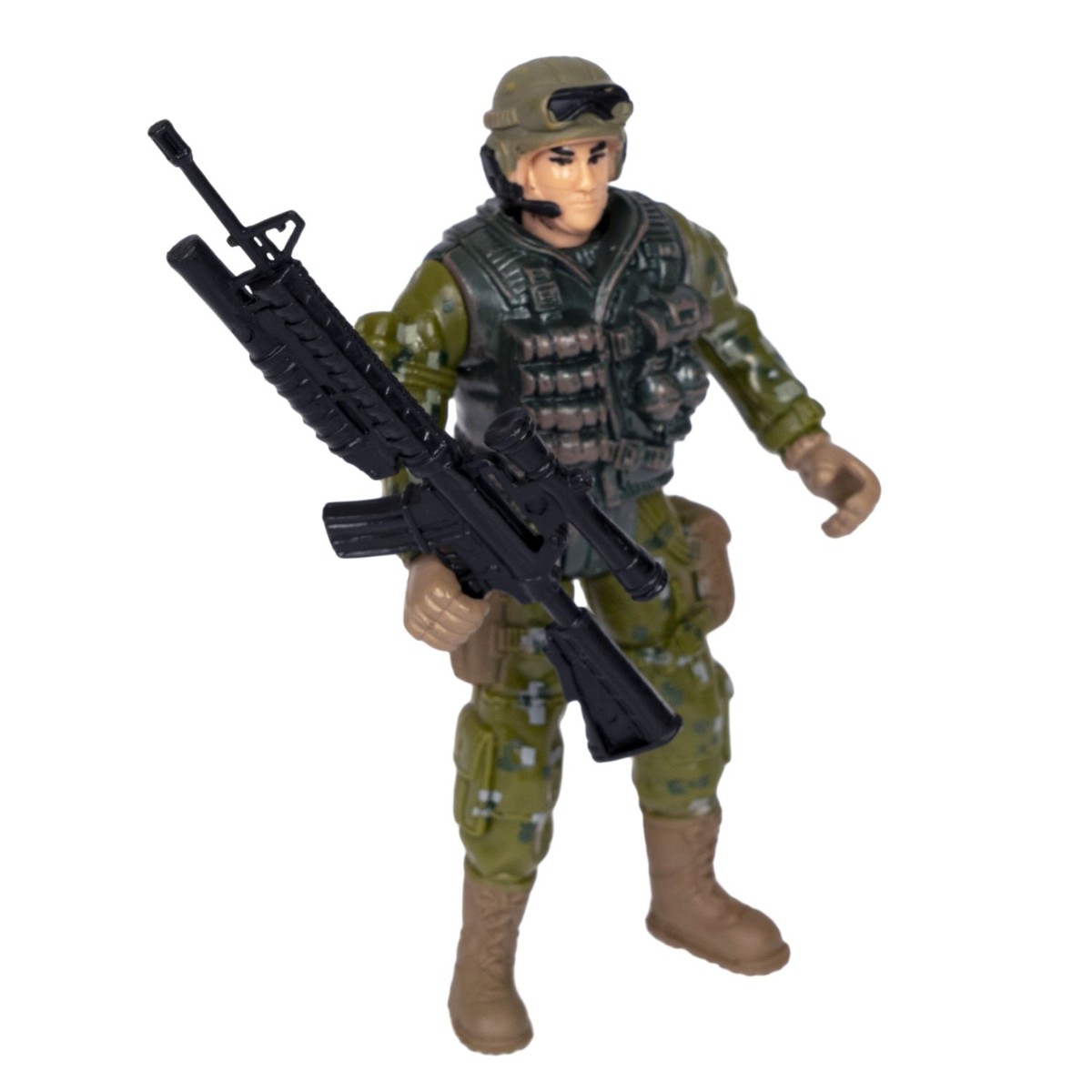 В комплекте: солдатик, набор из оружия: автомат, 3 вида пистолетов, мобильный телефон. Рекомендуемый возраст 3+.