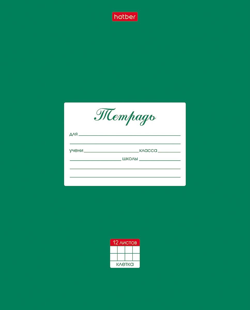 Тетрадь 12л клетка Однотонная. Классика Зеленая