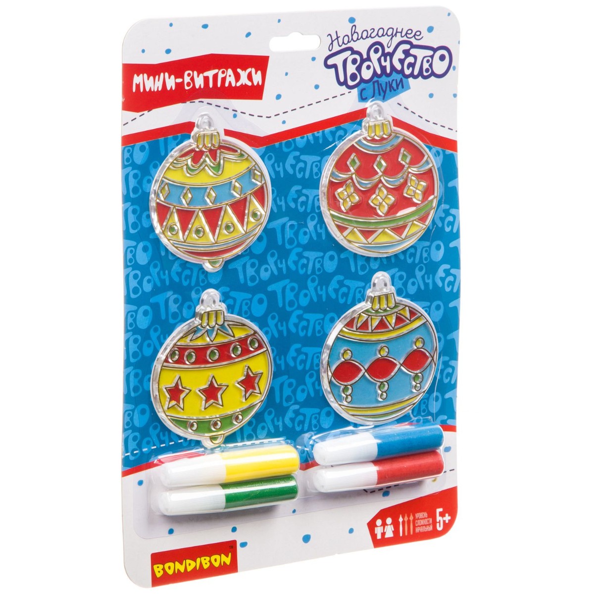 Витраж - это очень красивый вид искусства, который способен украсить собой любой интерьер. Изучить основы витражного искусства может даже ребенок, начиная с 5 лет. В наборе от Bondibon 4 тематических новогодних витража и 4 краски для раскрашивания. Готовые украшения в витражном стиле можно разместить на елке, окне, других предметах интерьера или порадовать близких рукодельным подарком. Bondibon - для ярких идей и веселых затей!