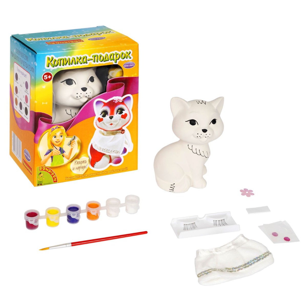 На Новый год принято дарить подарки. Подарки, сделанные своими руками, обладают особой ценностью - они дарят праздник не только тому, кто их получает, но и тому, кто их создает. Очаровательная керамическая кошечка может быть раскрашена в любые цвета (краски и кисть в комплекте), украшена бархатной накидкой и накладными ресничками для более выразительного взгляда. Такая копилка будет прекрасным подарком и непременно порадует и творца, и получателя подарка! Bondibon - для ярких идей и веселых затей!