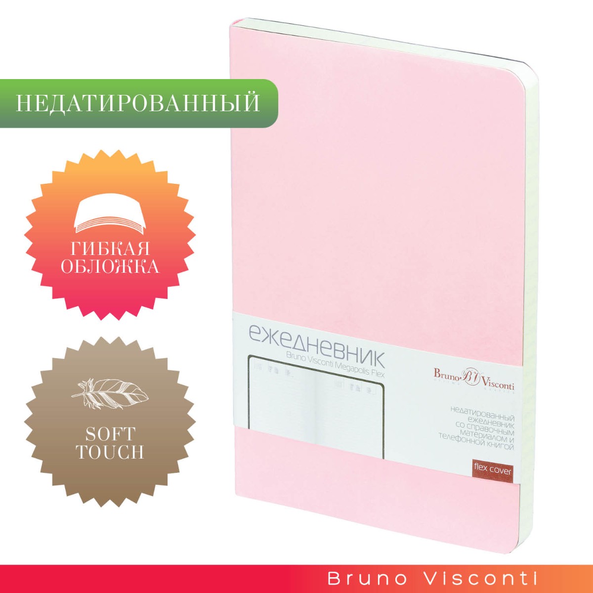 Ежедневник А5 BV Megapolis Flex (зефирный розовый) недат.