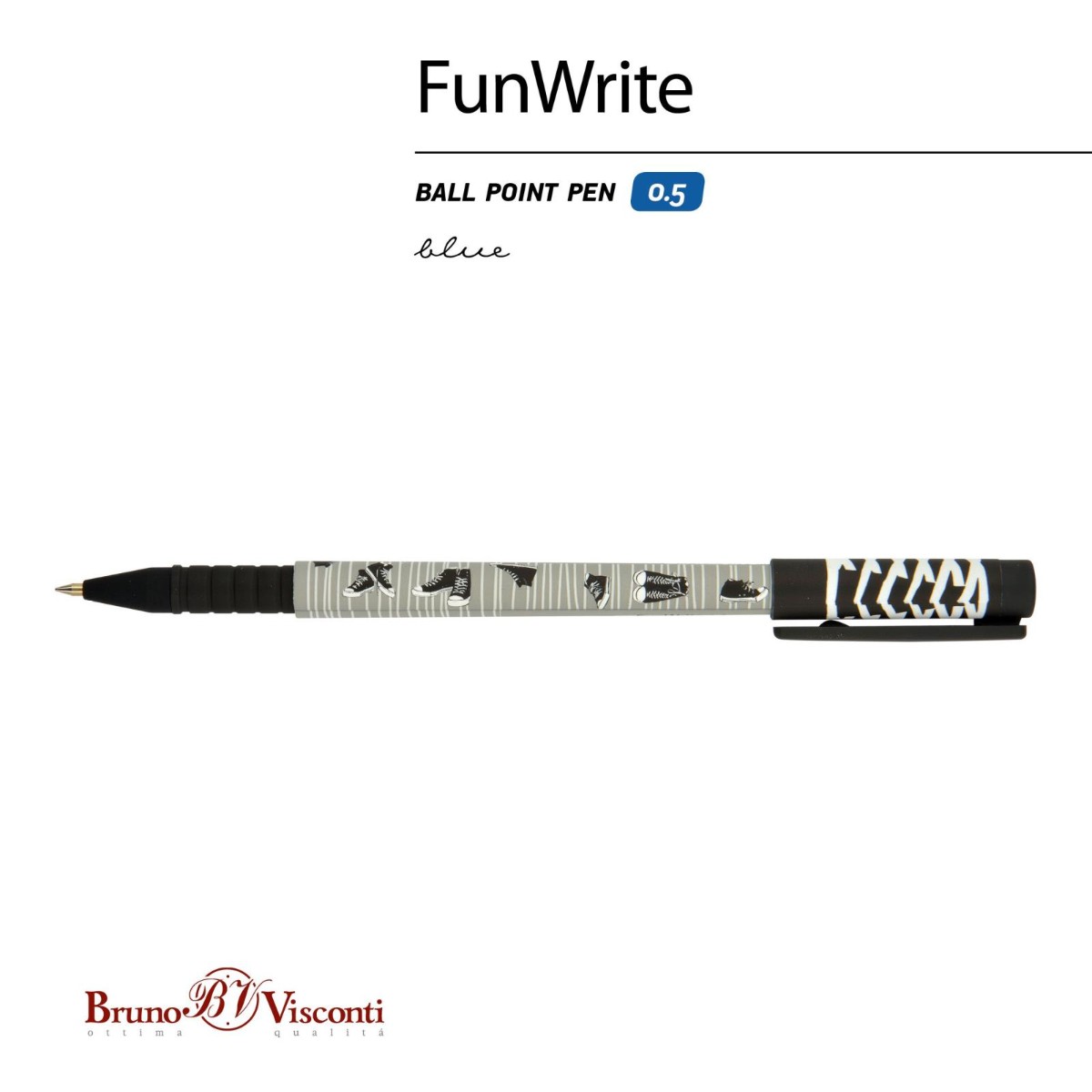 Ручка шариковая синяя BV FunWrite Кеды серые 0.5 принт