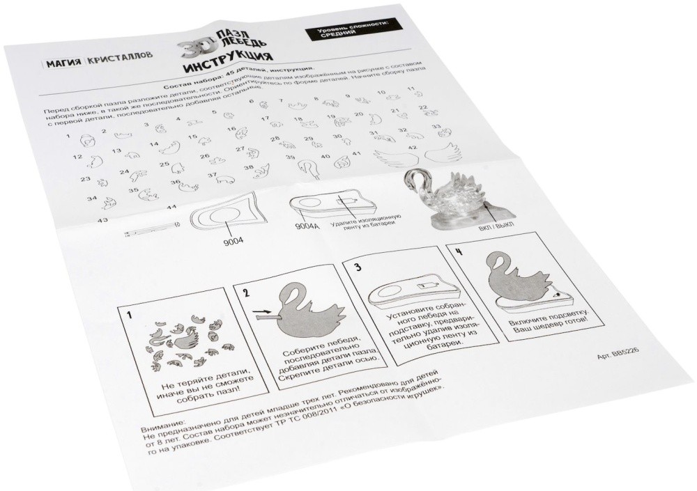 Пазл 3D Магия кристаллов Лебедь с подсветкой 45 дет