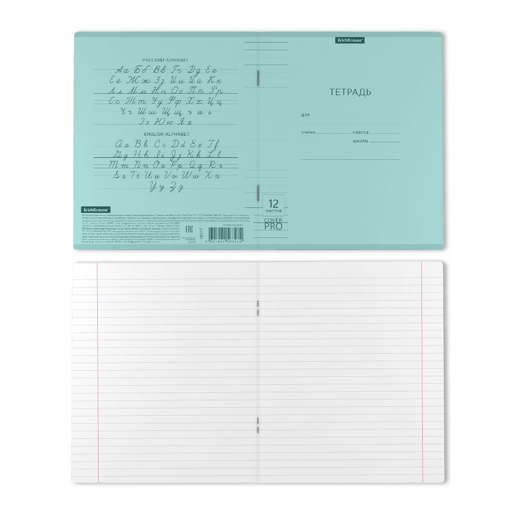 Тетрадь 12л линейка Однотонная. Классика CoverPrо Pastel, мятный пластиковая обложка