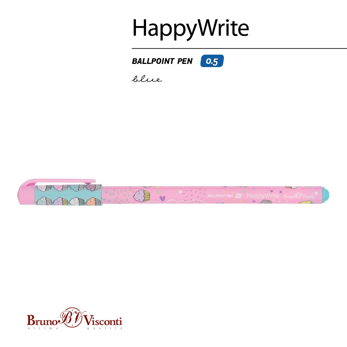Ручка шариковая синяя BV HappyWrite My Sweet. Капкейки 0,5мм