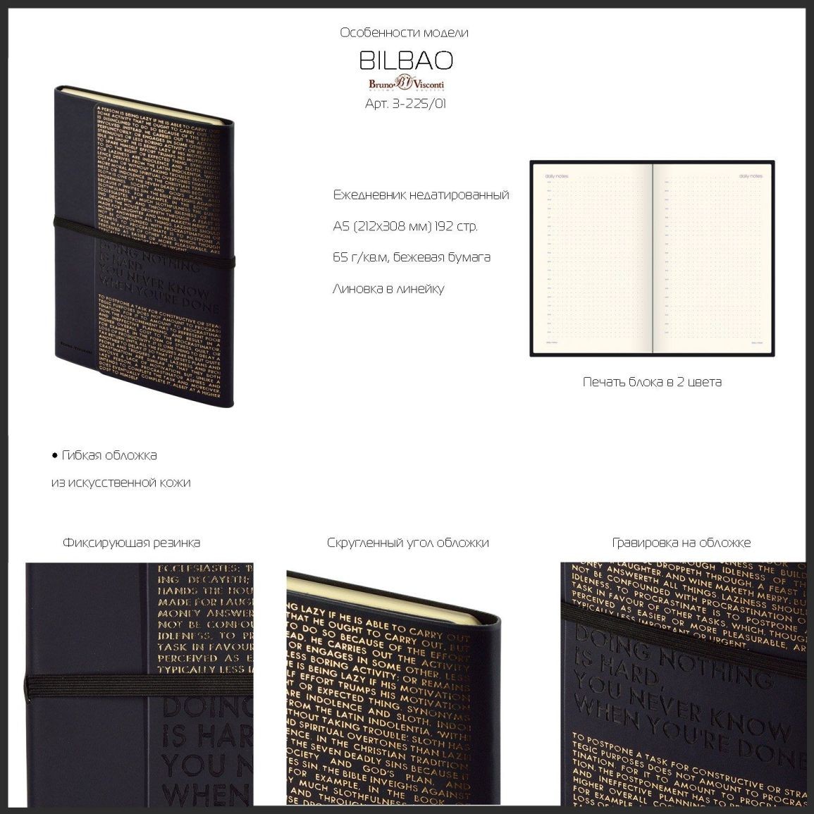 Ежедневник А5 BV Bilbao черный на резинке, недат, в подар. коробке