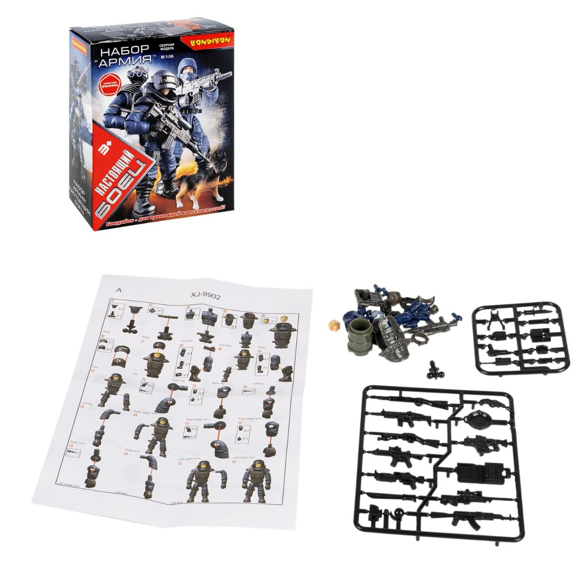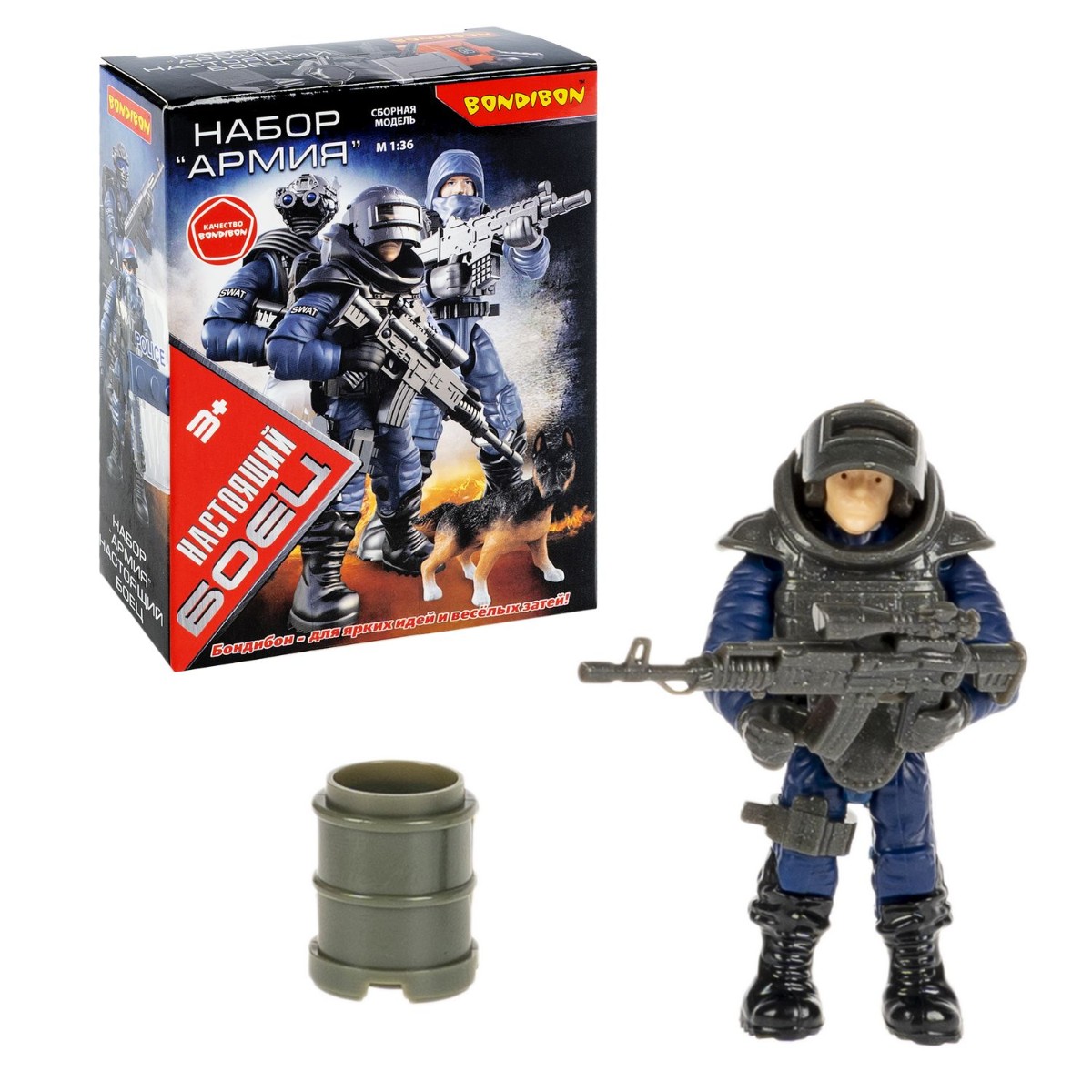 Игровой набор солдатик сапер с оружием и снаряжением НАСТОЯЩИЙ БОЕЦ от Bondibon непременно понравится будущим защитникам отечества. Сборная модель 1:36 с глубокой детализацией снаряжения – отличный подарок для мальчика, который обожает играть в войнушку. Достаньте реалистичную фигурку бойца в синей форме и маске, а также аксессуары. Отважный спецназовец готов отправиться на любое задание! Придумывайте различные сюжеты, используя дополнительный комплект оружия из 13 предметов. Игрушку компактного размера 6см удобно брать с собой. Солдатик с оружием НАСТОЯЩИЙ БОЕЦ поможет развить познавательные способности, мелкую моторику, фантазию и эмоциональный интеллект ребенка. Игрушка выполнена из качественных безопасных материалов. В набор входят: сборная модель солдатика, аксессуары, рамка с оружием. Возраст 3+ Соберите коллекцию игрушечных солдат спецназа от Бондибон!