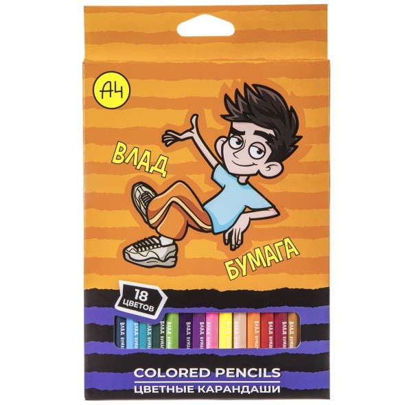 Карандаши цветные 18 цв Hatber Влад А4 к/к