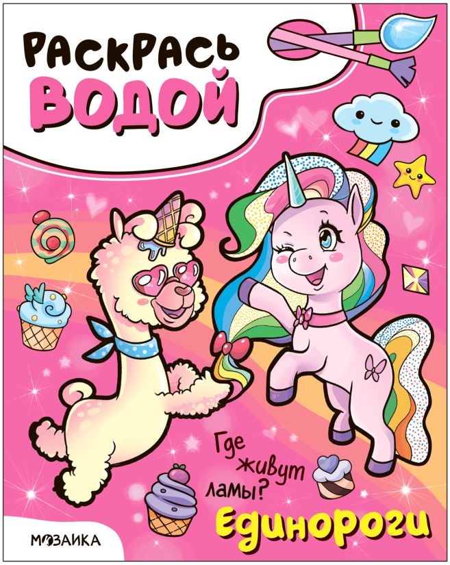 Раскраска Водная раскраска Единороги. Где живут ламы?