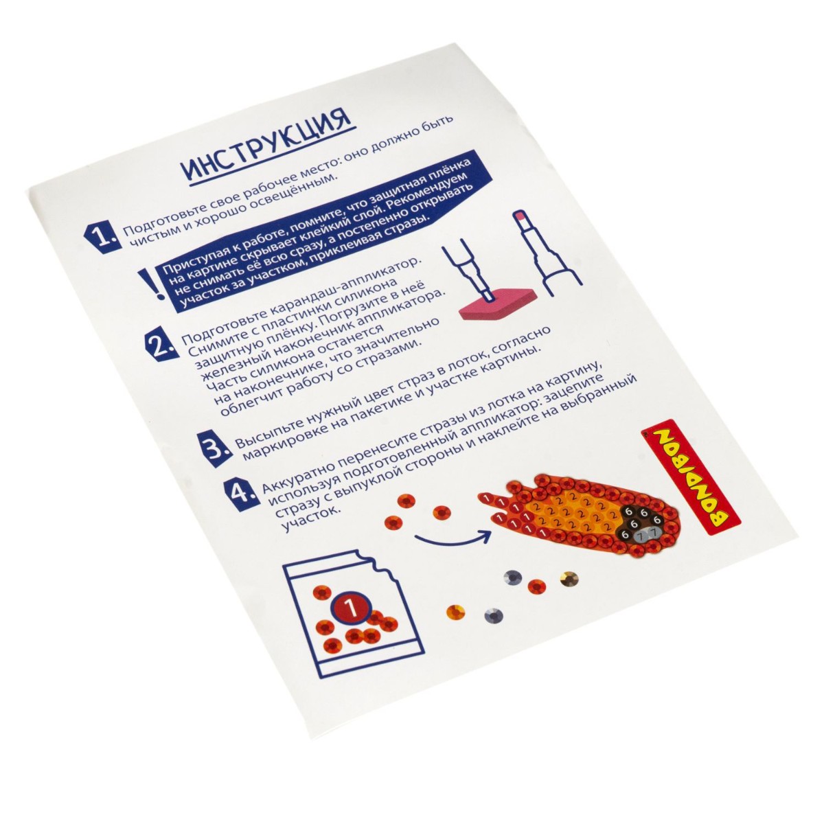 Перенесите стразы на картину, используя аппликатор: зацепите стразу с выпуклой стороны и на клейте на выбранный участок.