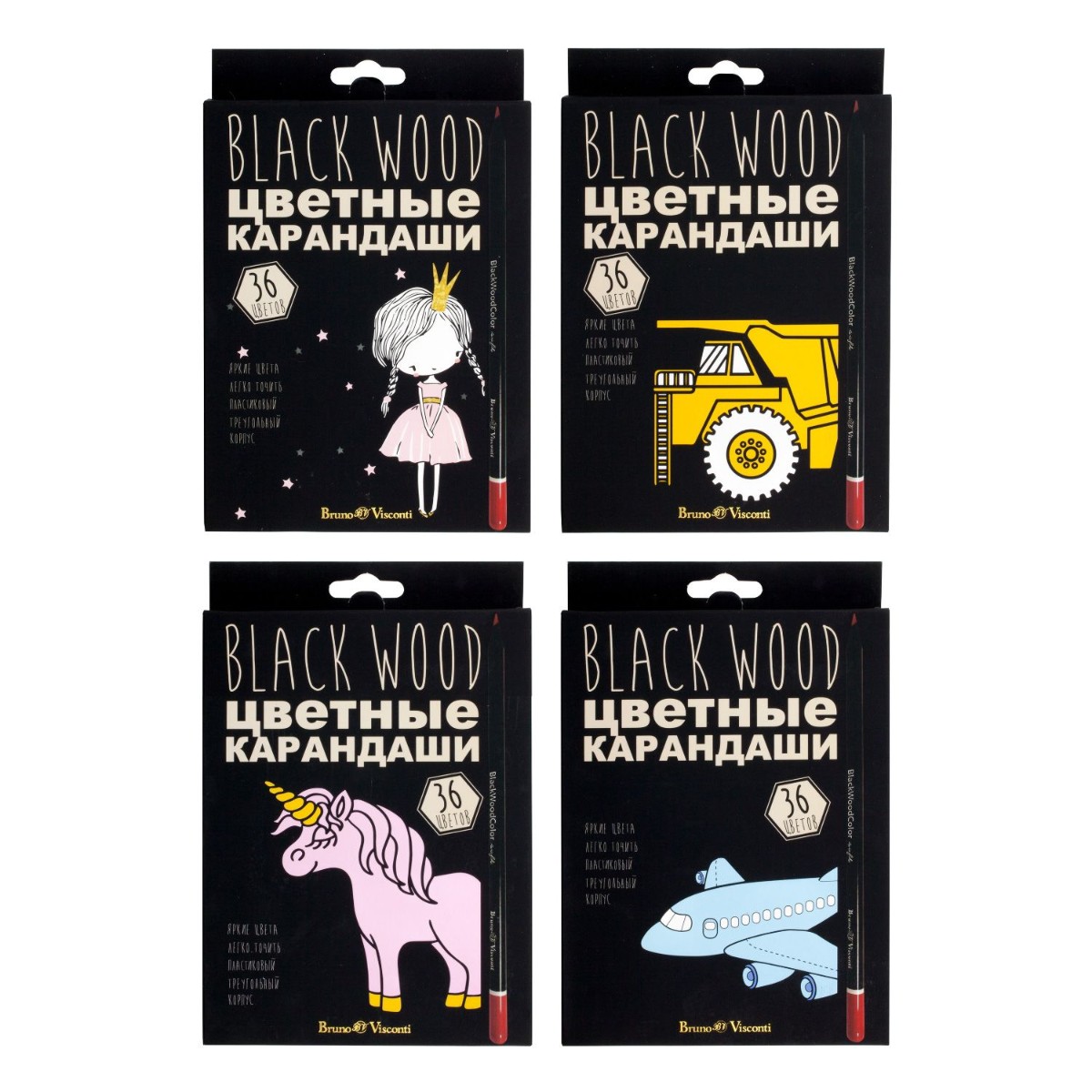 Карандаши цветные 36 цв пластик BV BlackWoodColor