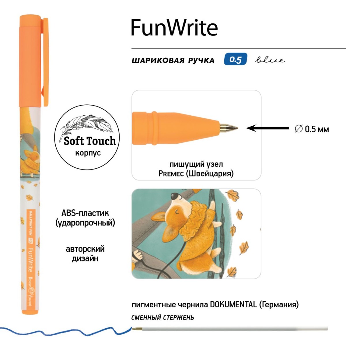 Ручка шариковая синяя BV FunWrite Городская прогулка. Корги 0,5мм принт