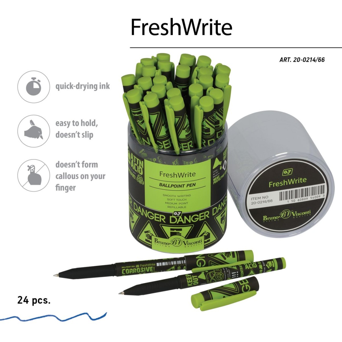 Ручка шариковая синяя BV FreshWrite Опасность! Едкое вещество 0,7мм принт