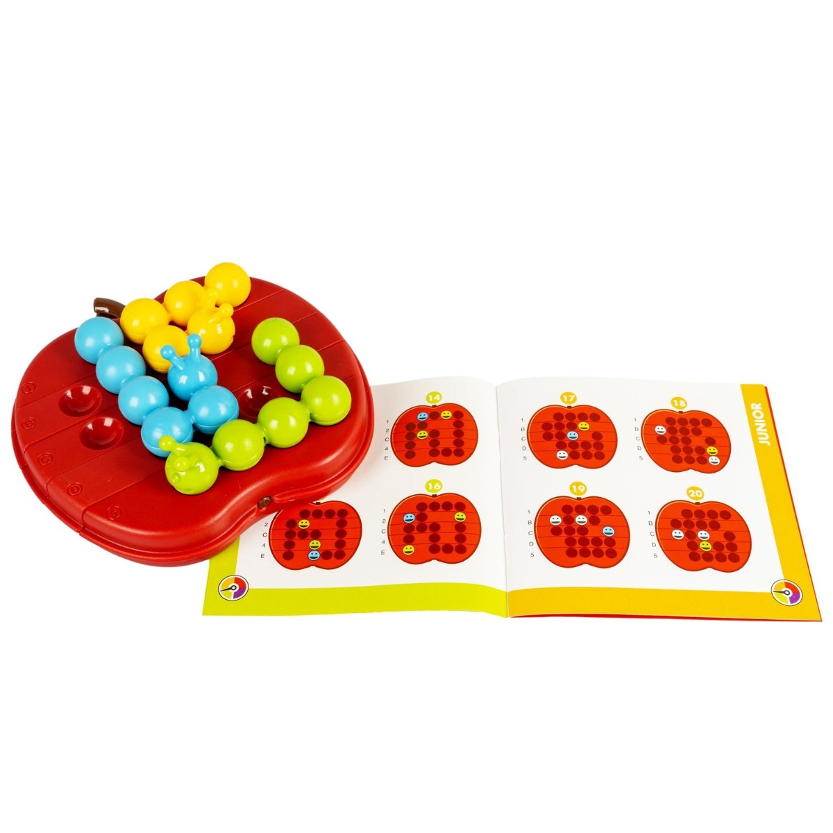 Три голодных гусеницы хотят съесть одно и то же яблоко. Можете ли Вы согнуть их так, чтобы они все поместились в яблоке? Эта логическая игра требует гибкого мышления! Гусеницы вращаются… как и игровая доска!
