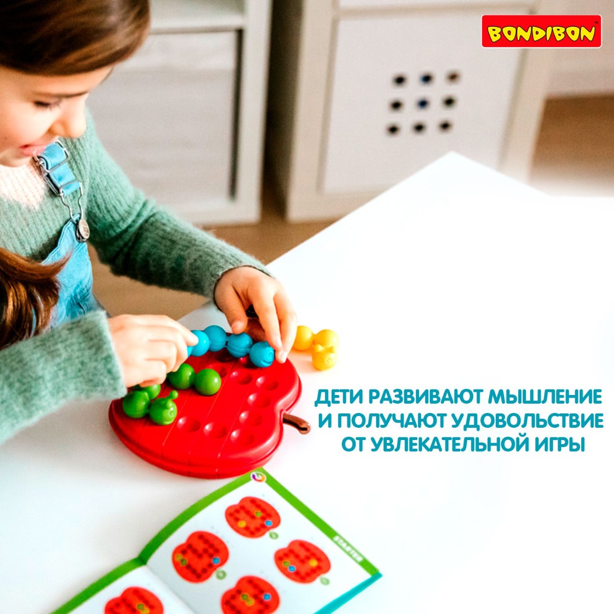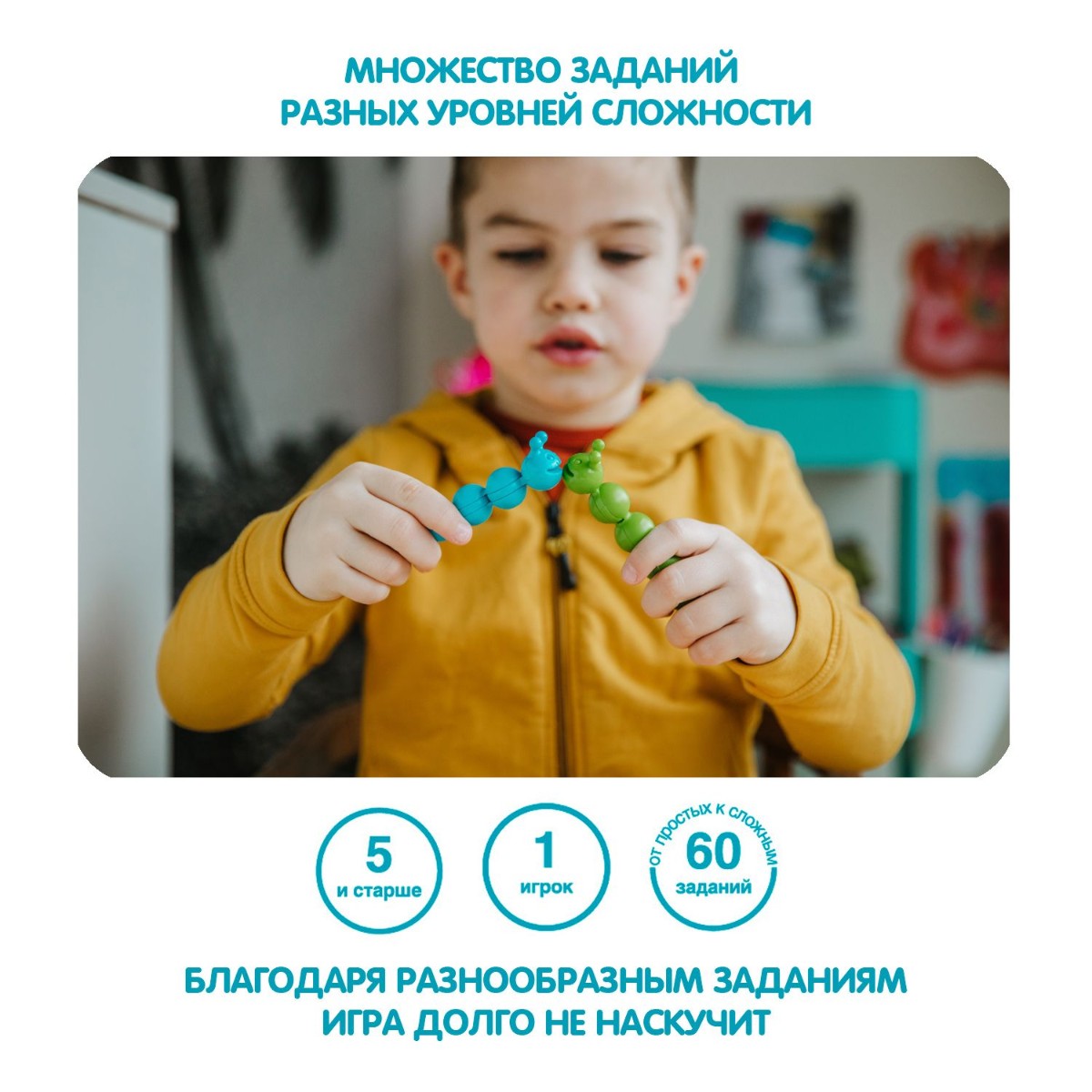 В комплекте буклет с заданиями, игровое поле и яркие детали головоломки в виде гусеничек.