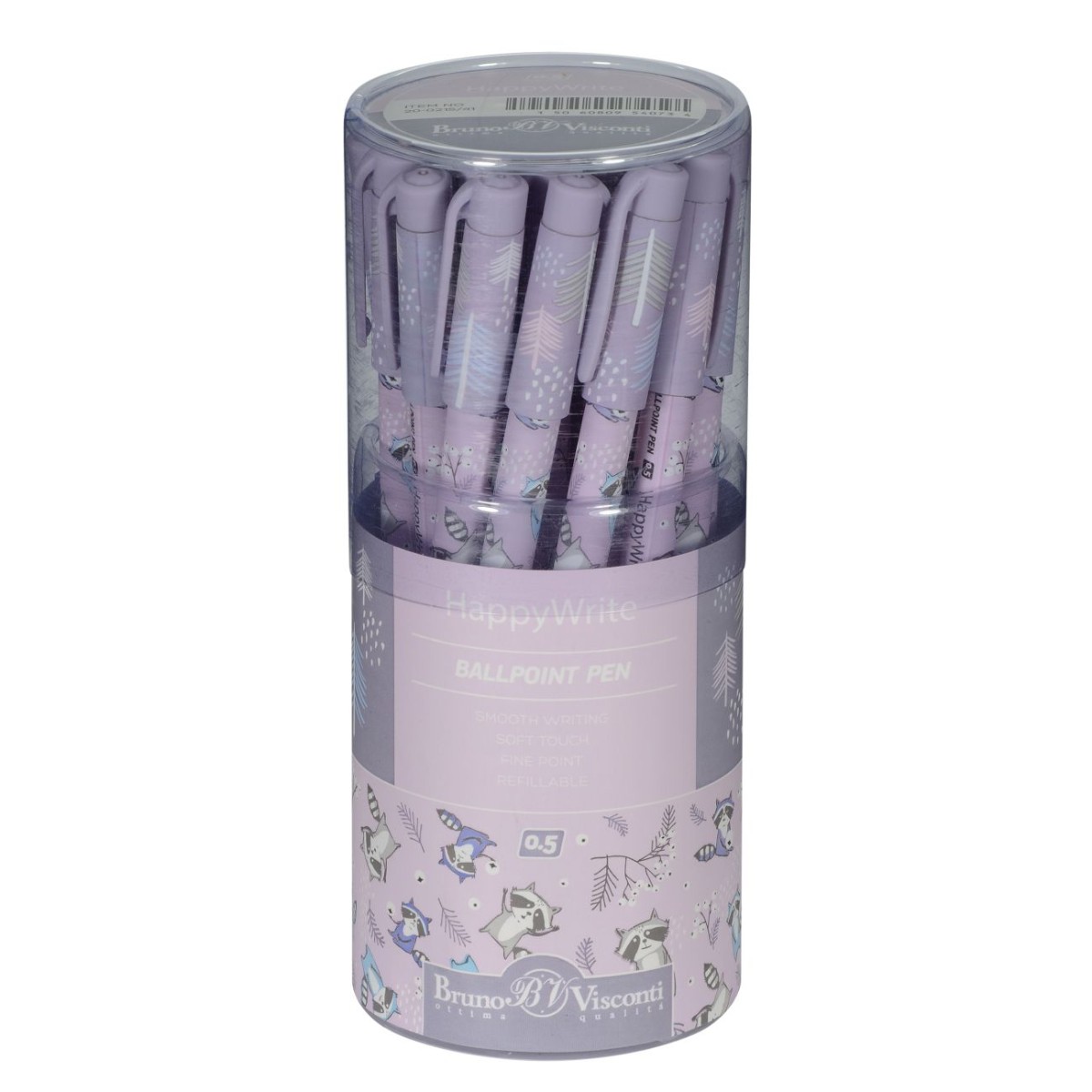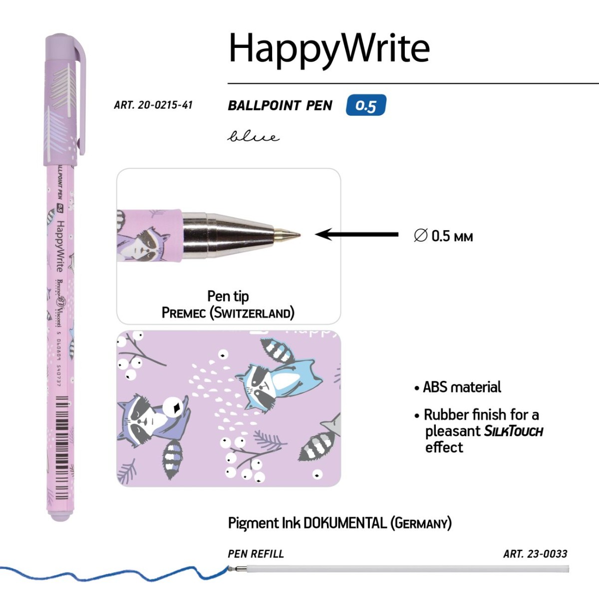 Ручка шариковая синяя BV HappyWrite Sweet Animals. Енотики 0,5мм