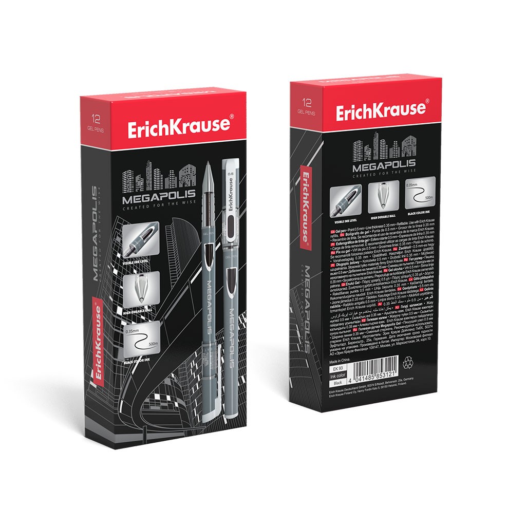 Ручка гелевая черная EK Megapolis серый копус 0,5мм
