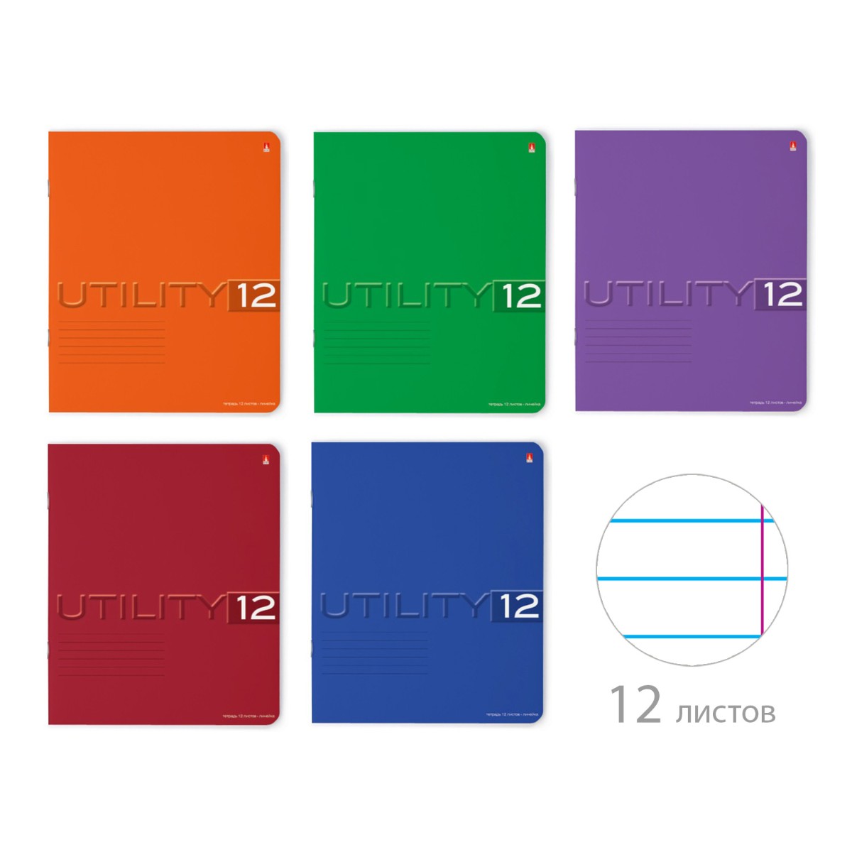 Тетрадь 12л линейка Однотонная. Utility ассорти
