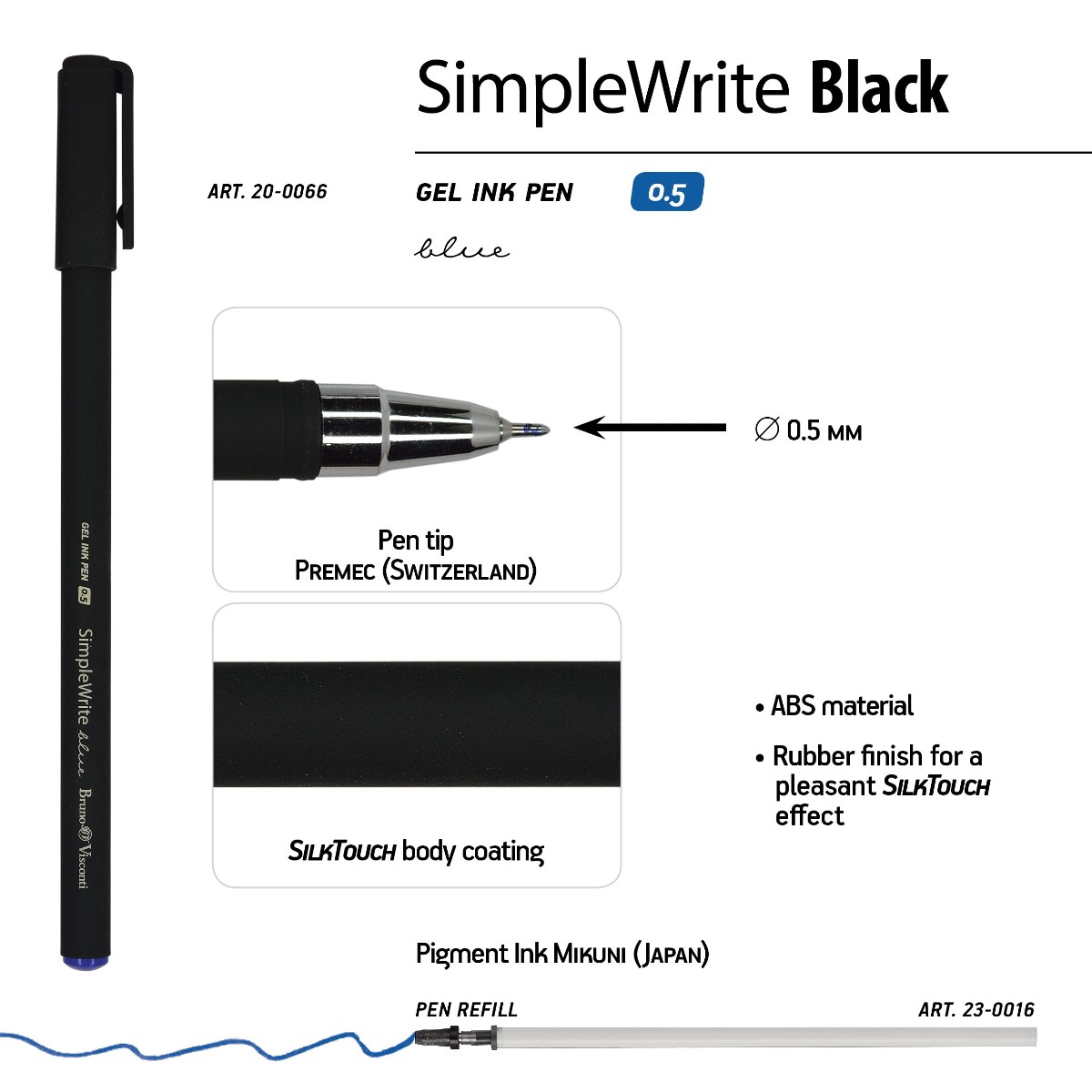 Ручка гелевая синяя BV SimpleWrite 0,5мм корпус черный