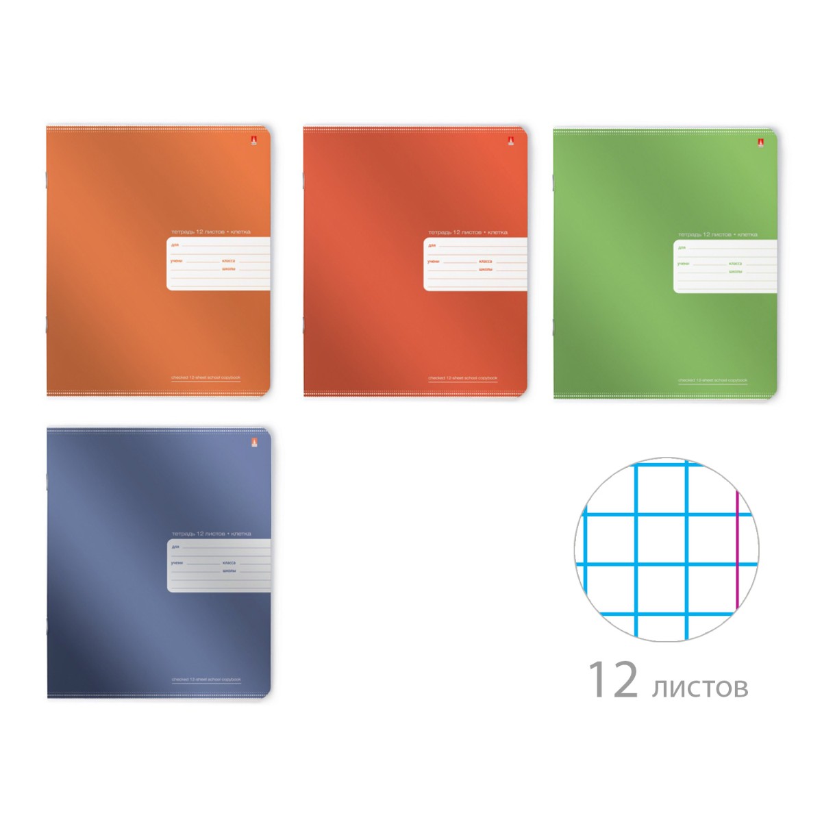 Тетрадь 12л клетка Однотонная. Премиум металлик
