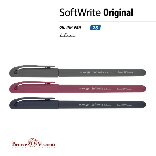 Ручка шариковая синяя BV SoftWrite Original 0.5мм ассорти масляная