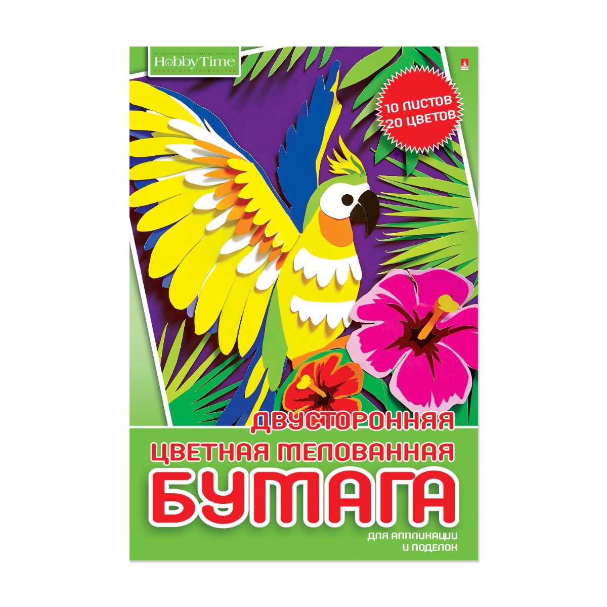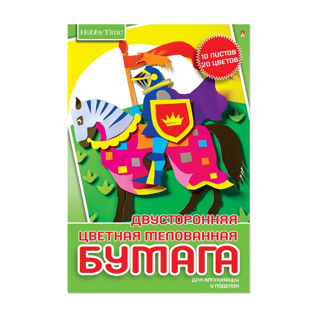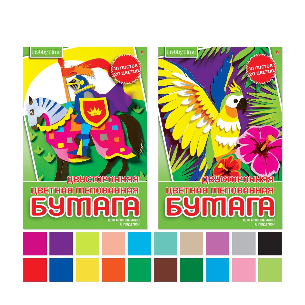Цв. бумага А4 10л 20цв мелов двуст папка