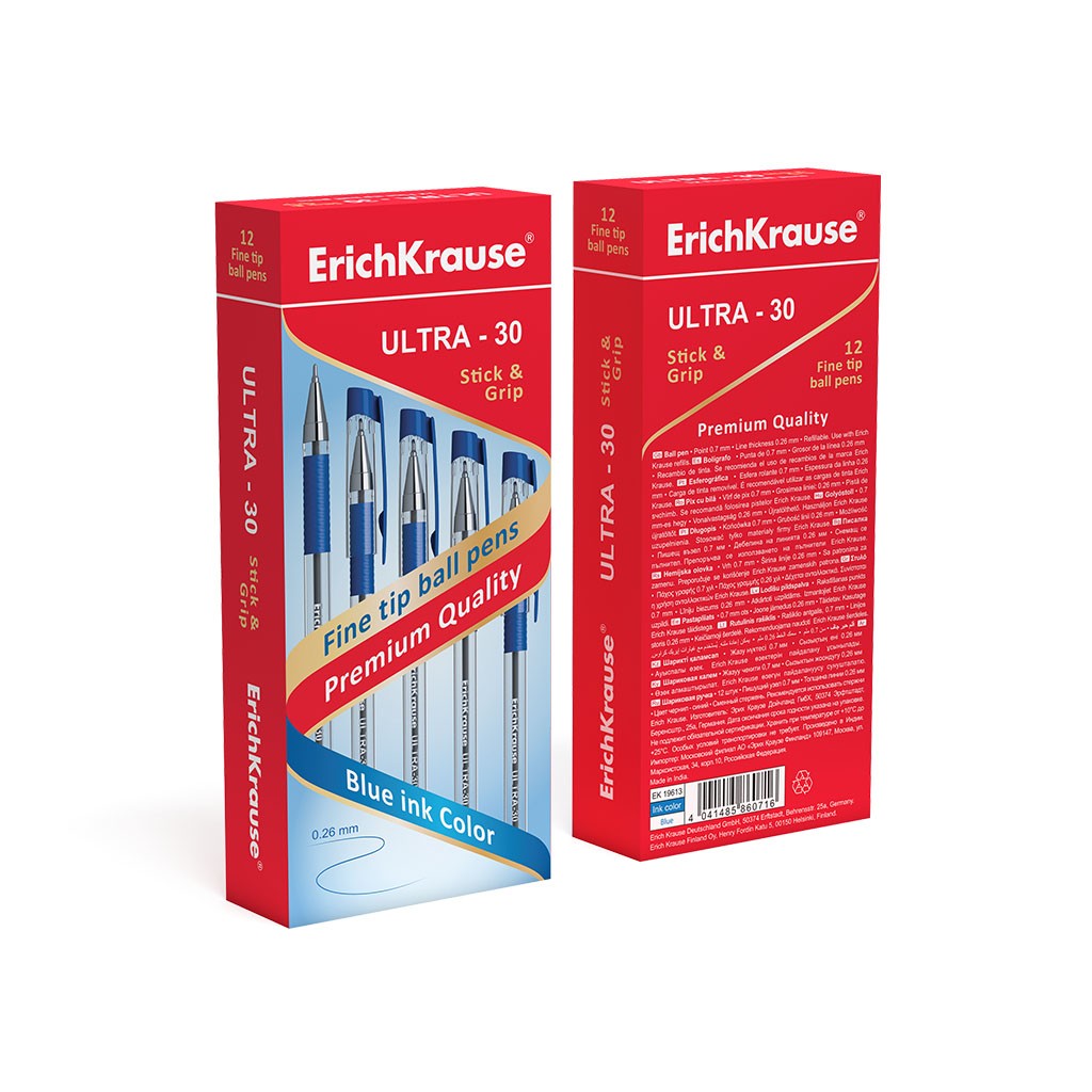 Ручка шариковая синяя EK Ultra L-30 прозрач. корпус 0,7мм
