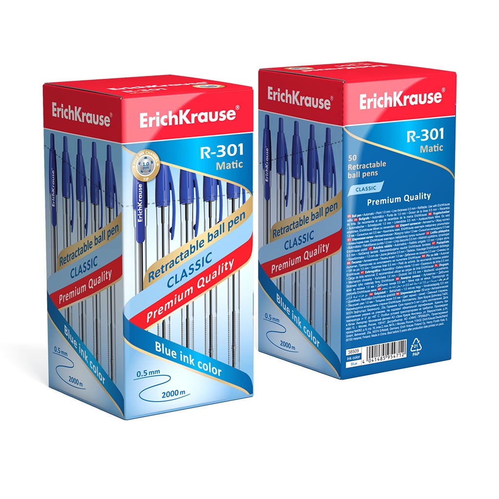 Ручка шариковая синяя EK R-301 Classic Matic автомат прозр корпус 1мм