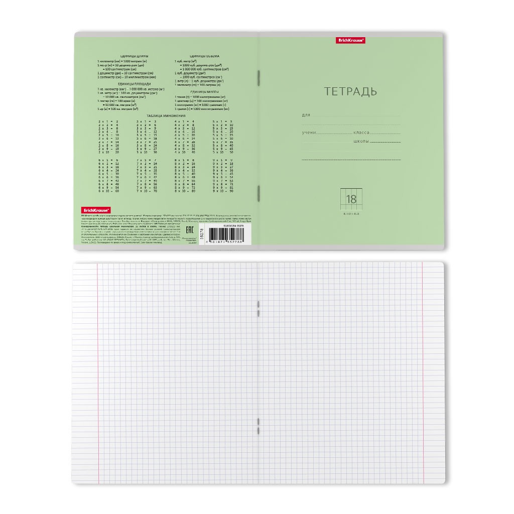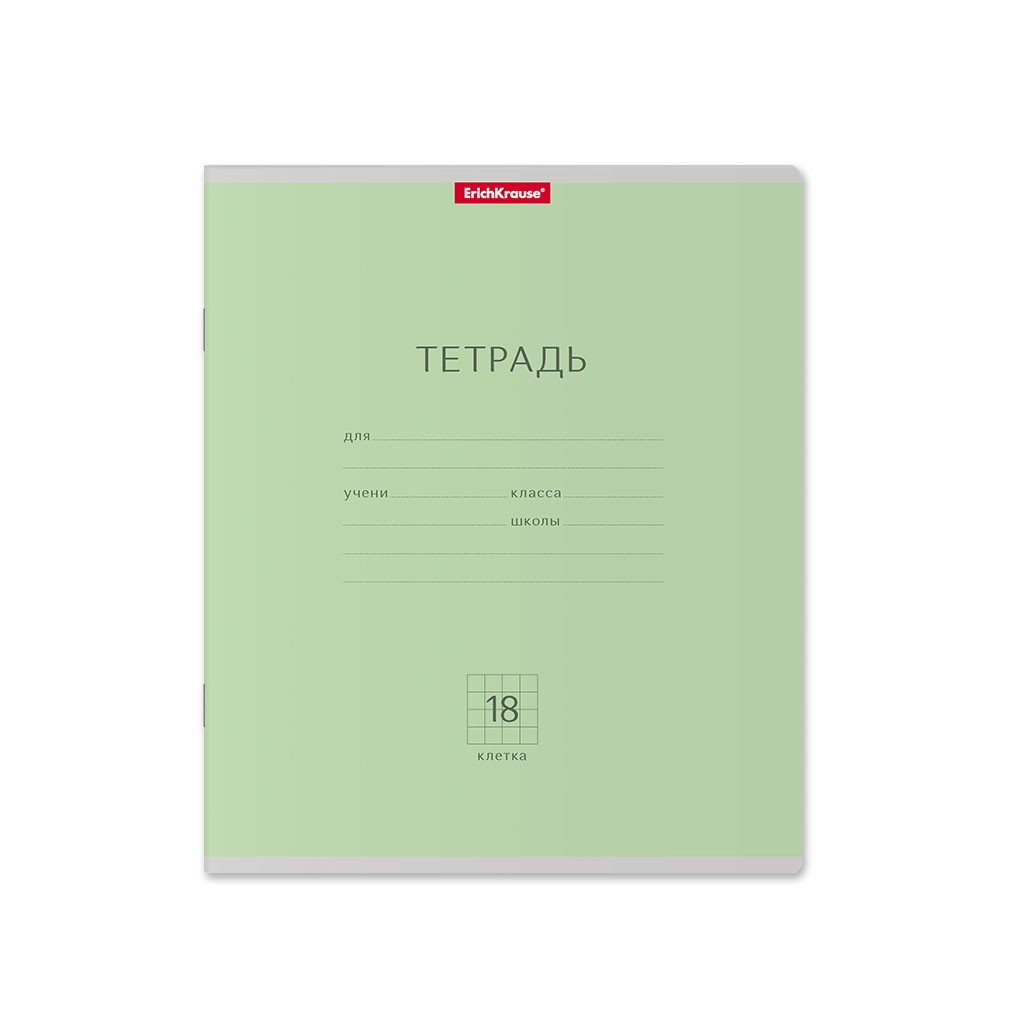 Тетрадь 18л клетка Однотонная. Классика зеленая скругл