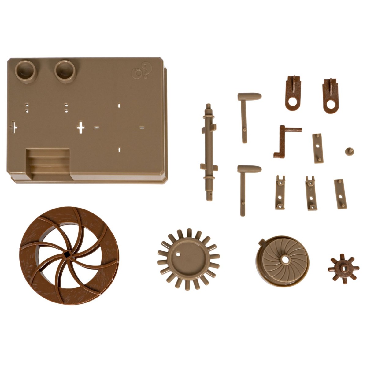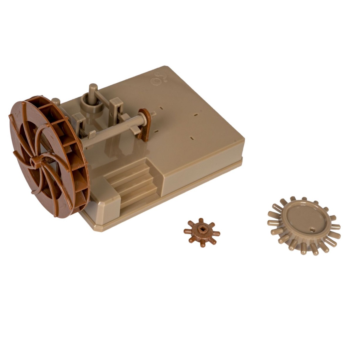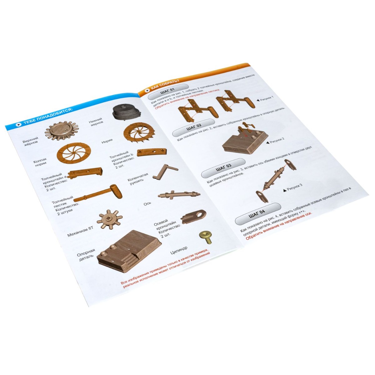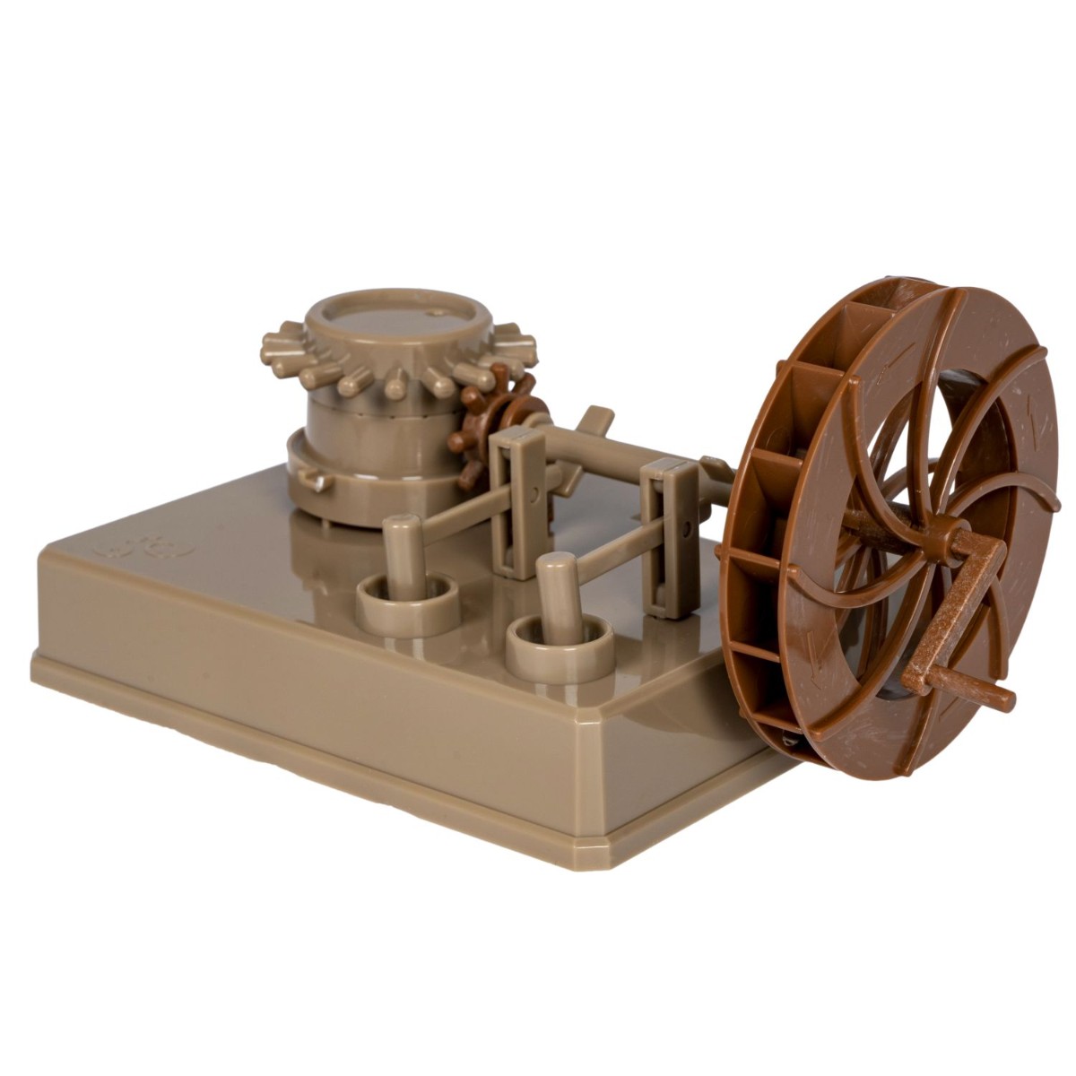 Водяные мельницы существуют с незапамятных времен. Они были изобретены для облегчения труда человека еще в глубокой древности и служат нам по сей день! Этот набор позволит ребятам познакомиться с устройством водяной мельницы, собрать ее действующую модель, и увидеть, как под воздействием воды механизм водяной мельницы приходит в работу. Это идеальное наглядное пособие для первых физических опытов. В состав набора входят верхний жёрнов, нижний жёрнов, 2 осевых кронштейна, 4 толчейных кронштейна, колпак нории, нория, коленчатая рукоять, 2 толчейных пестика, механизм, опорная деталь, ось, цилиндр и инструкция.