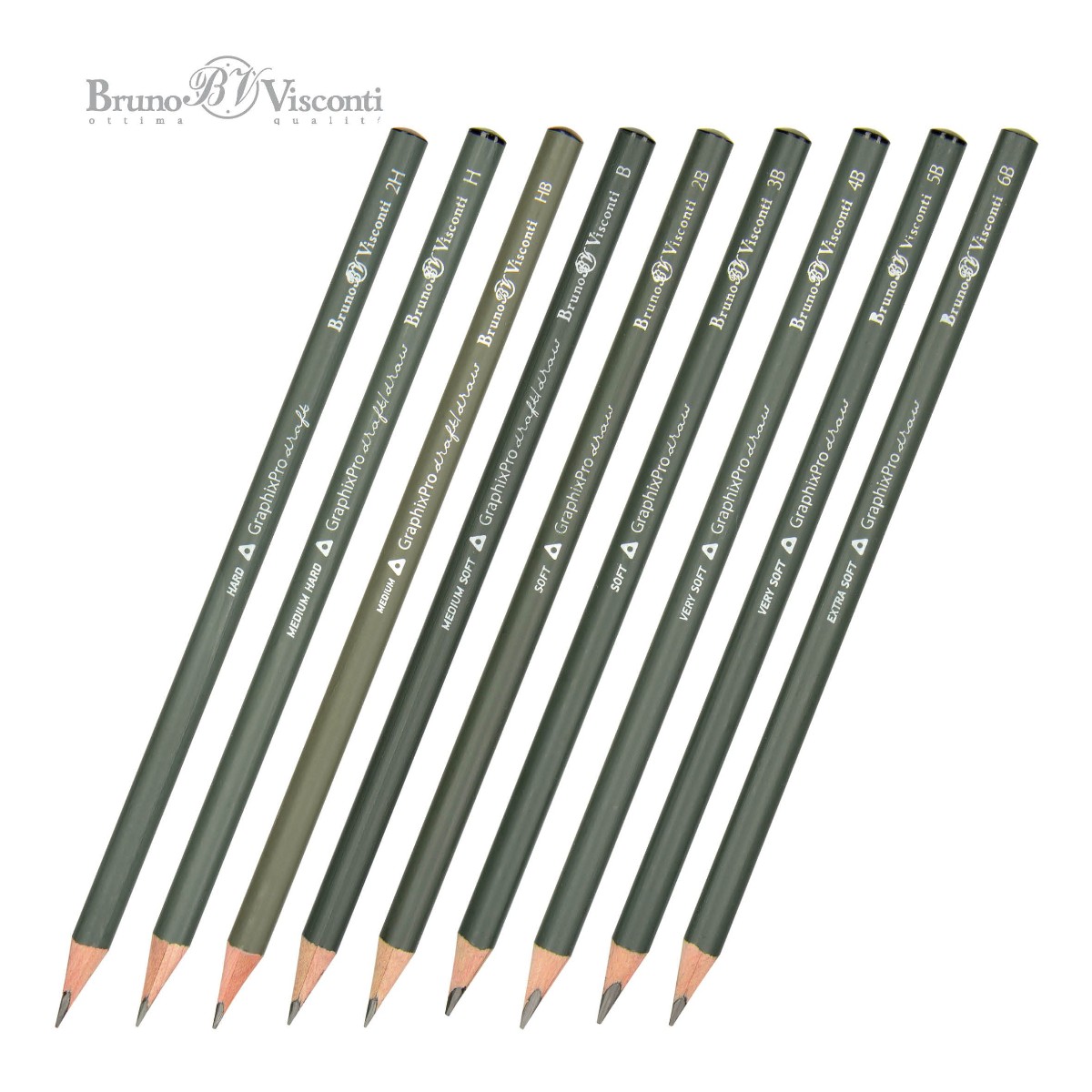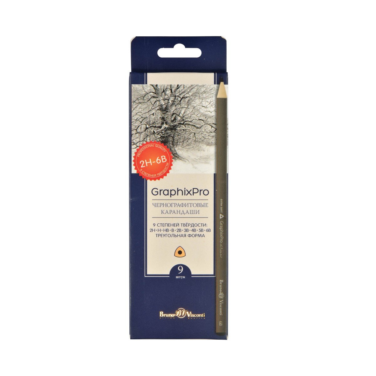 Карандаши ч/гр 9 шт разной твердости BV треугольные 2H-6B