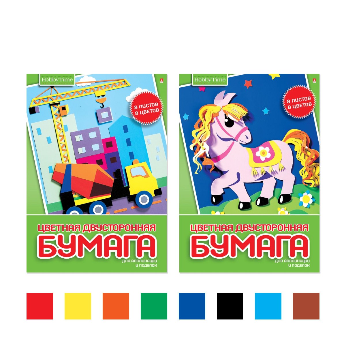 Цв. бумага А4 8л 8цв немел Hobby Time двуст скрепка