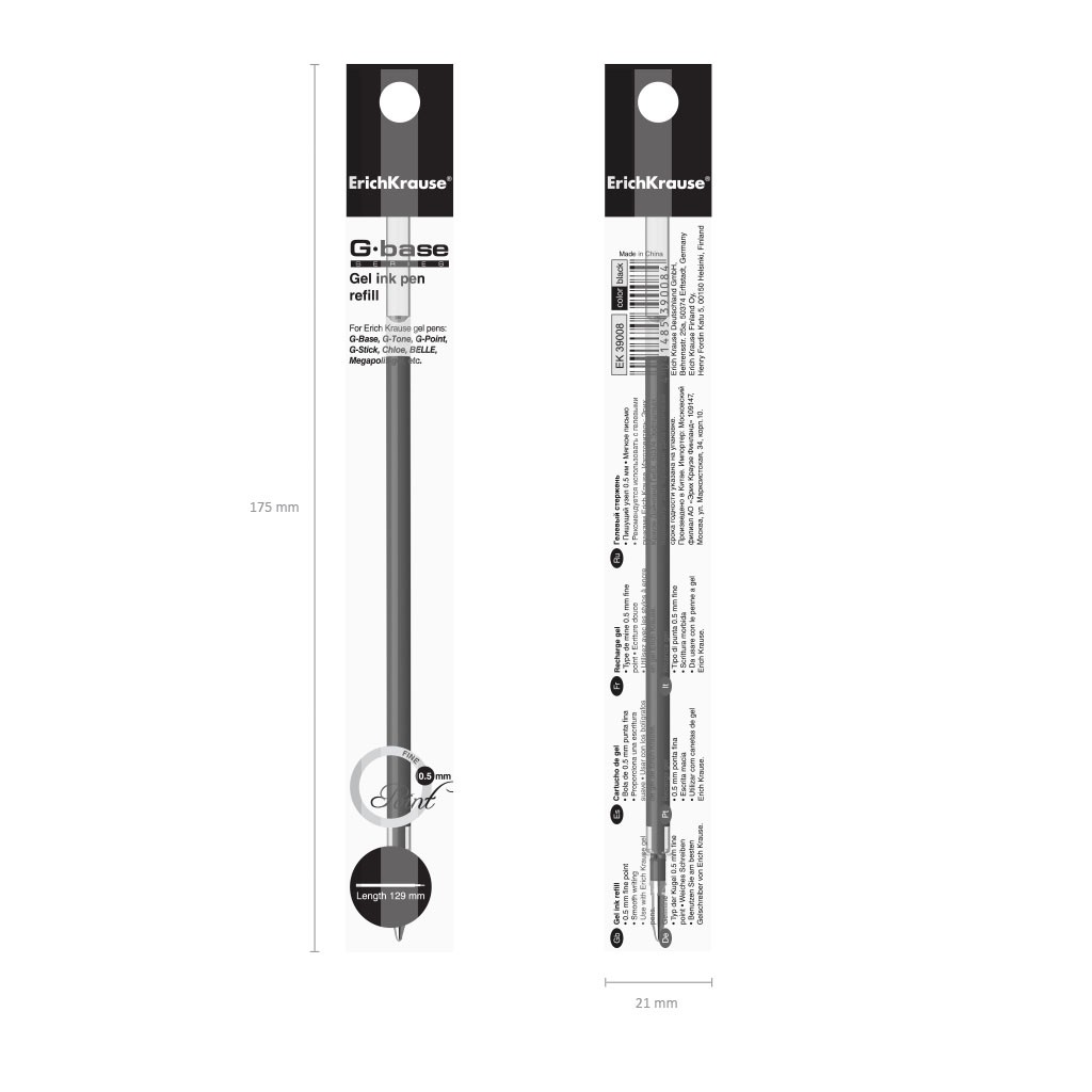 Стержень гелевый черный EK G-BASE fine 129мм 0,5