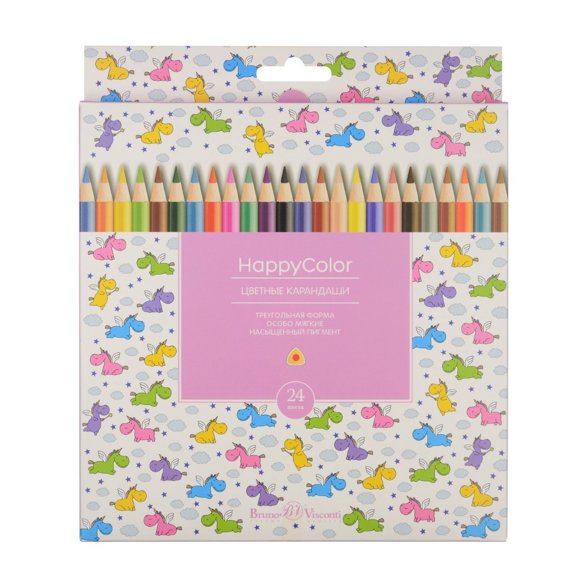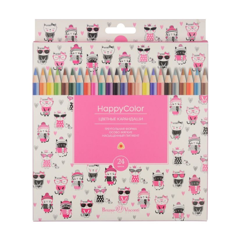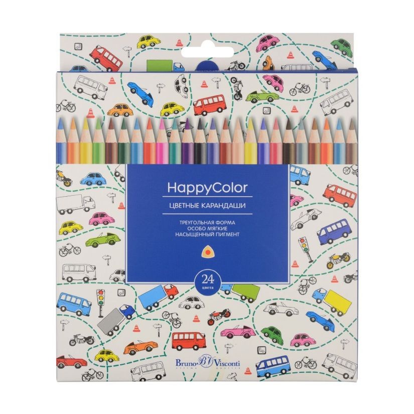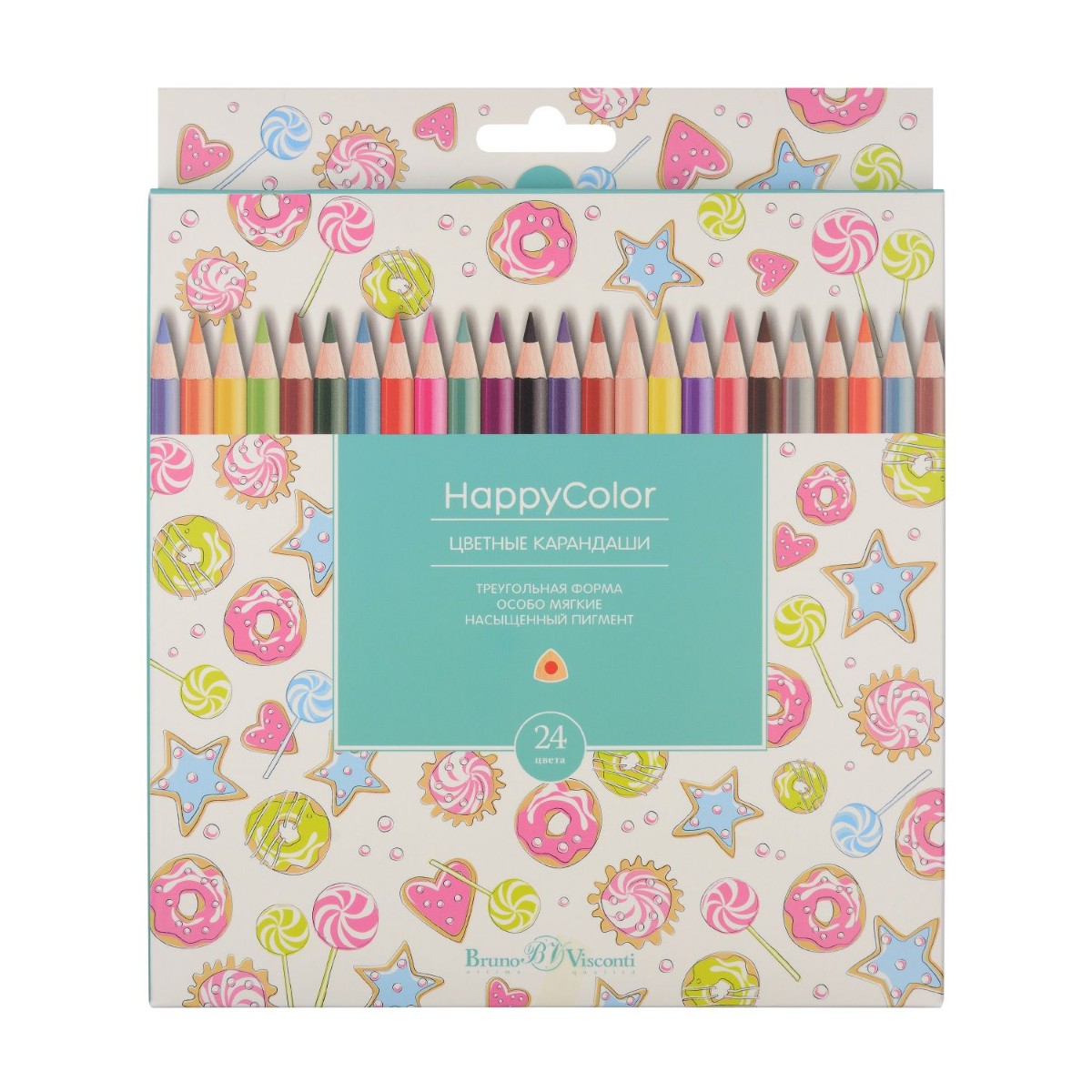 Карандаши цветные 24 цв BV Happy Color треуг к/к