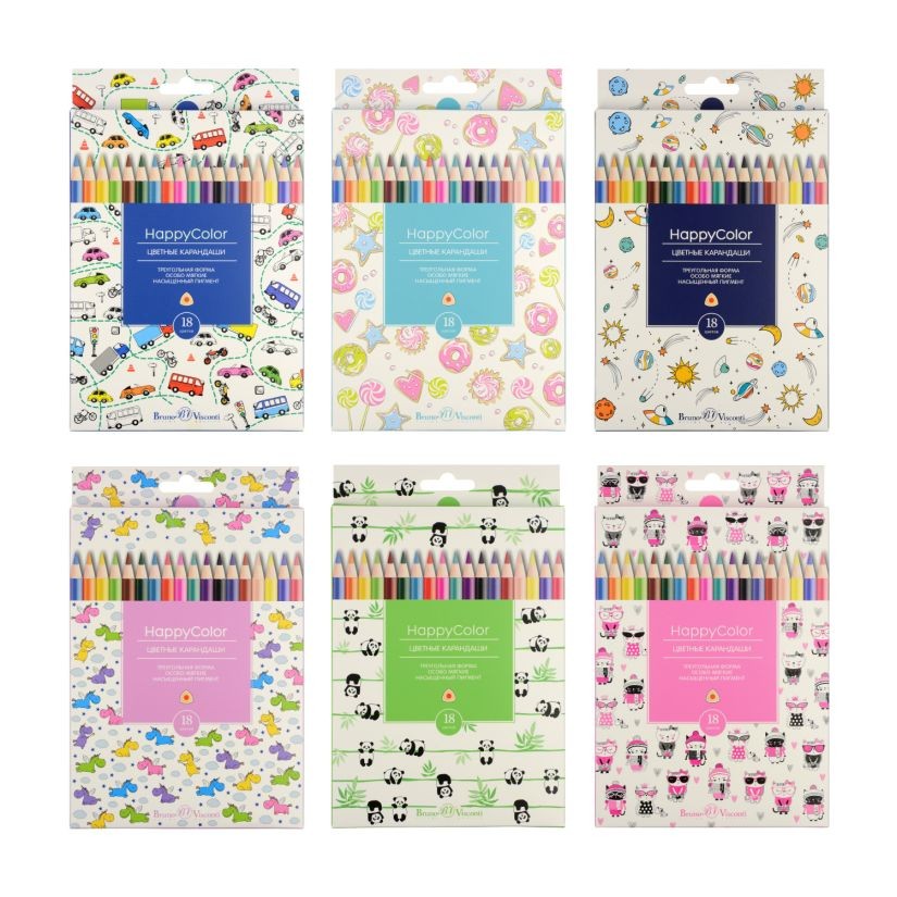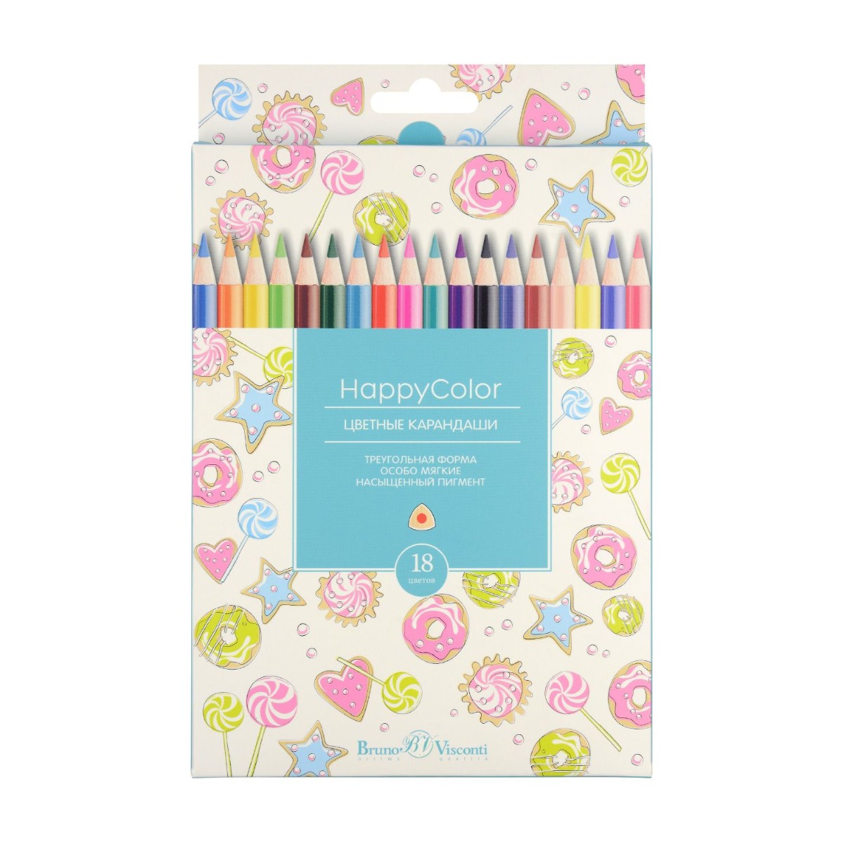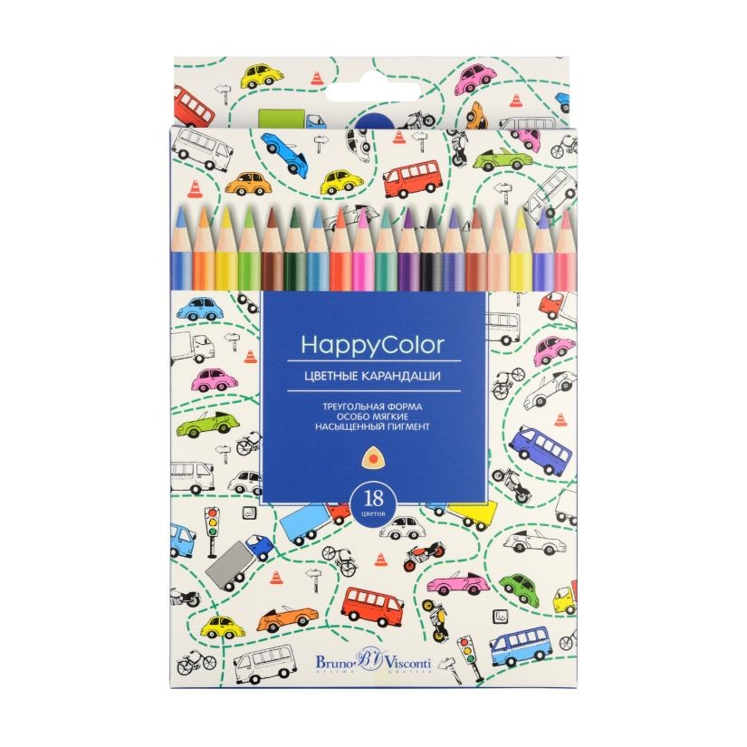 Карандаши цветные 18 цв BV HappyColor треуг к/к