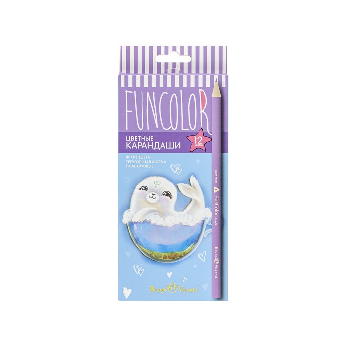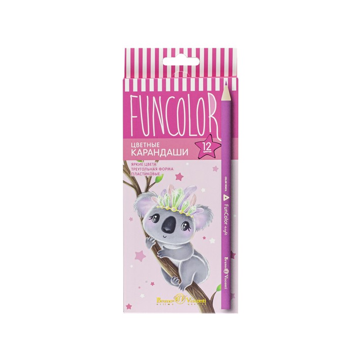 Карандаши цветные 12 цв пластик BV FunColor Медвежон