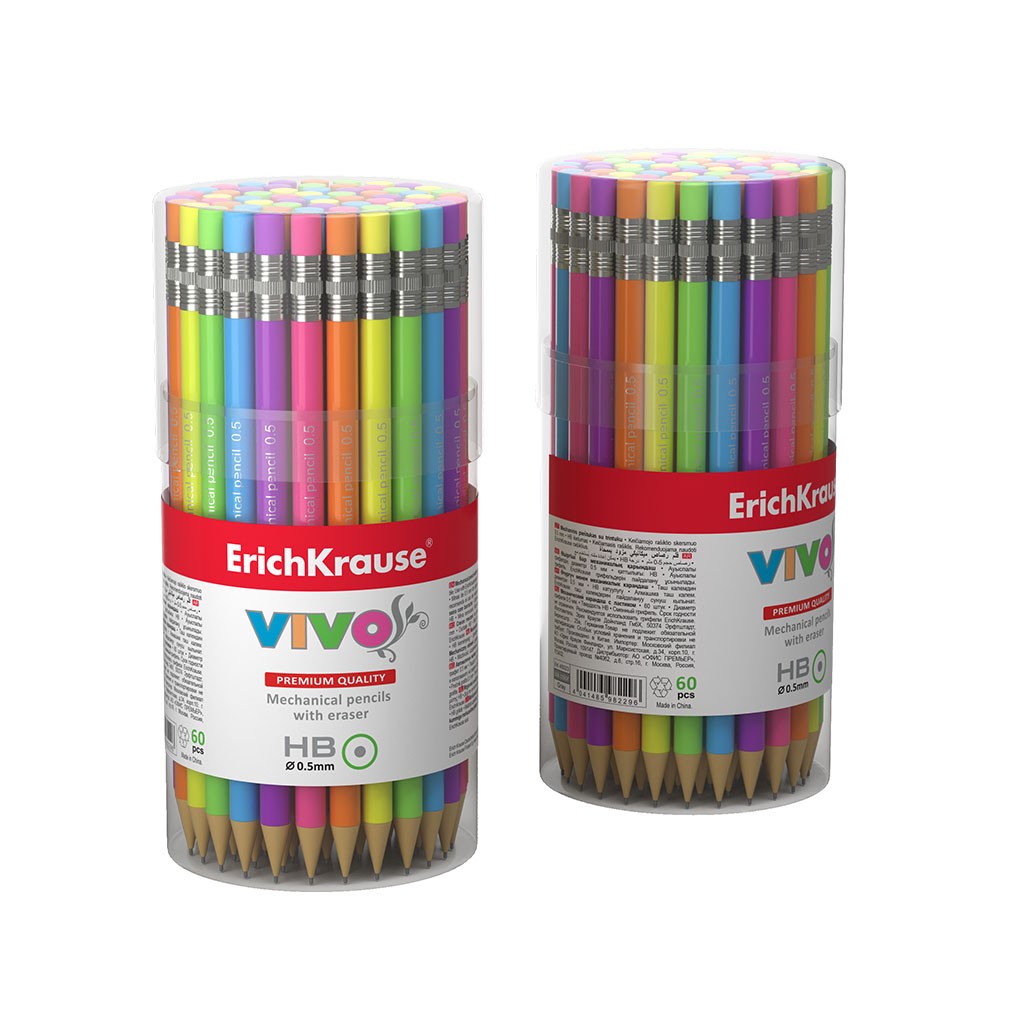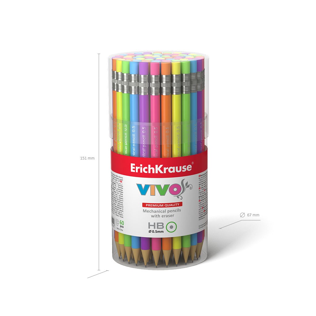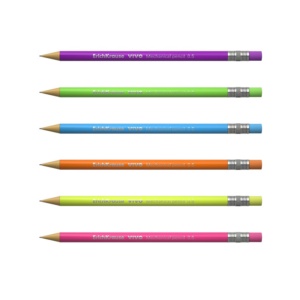 Карандаш мех. 0.5мм EK Vivo с ластиком ассорти