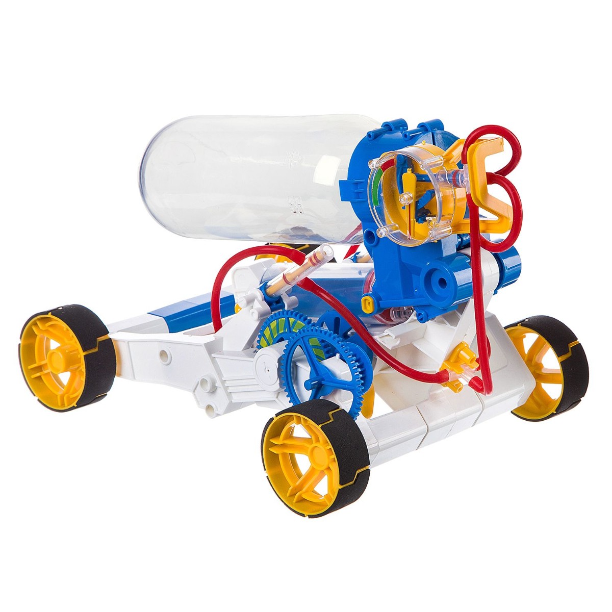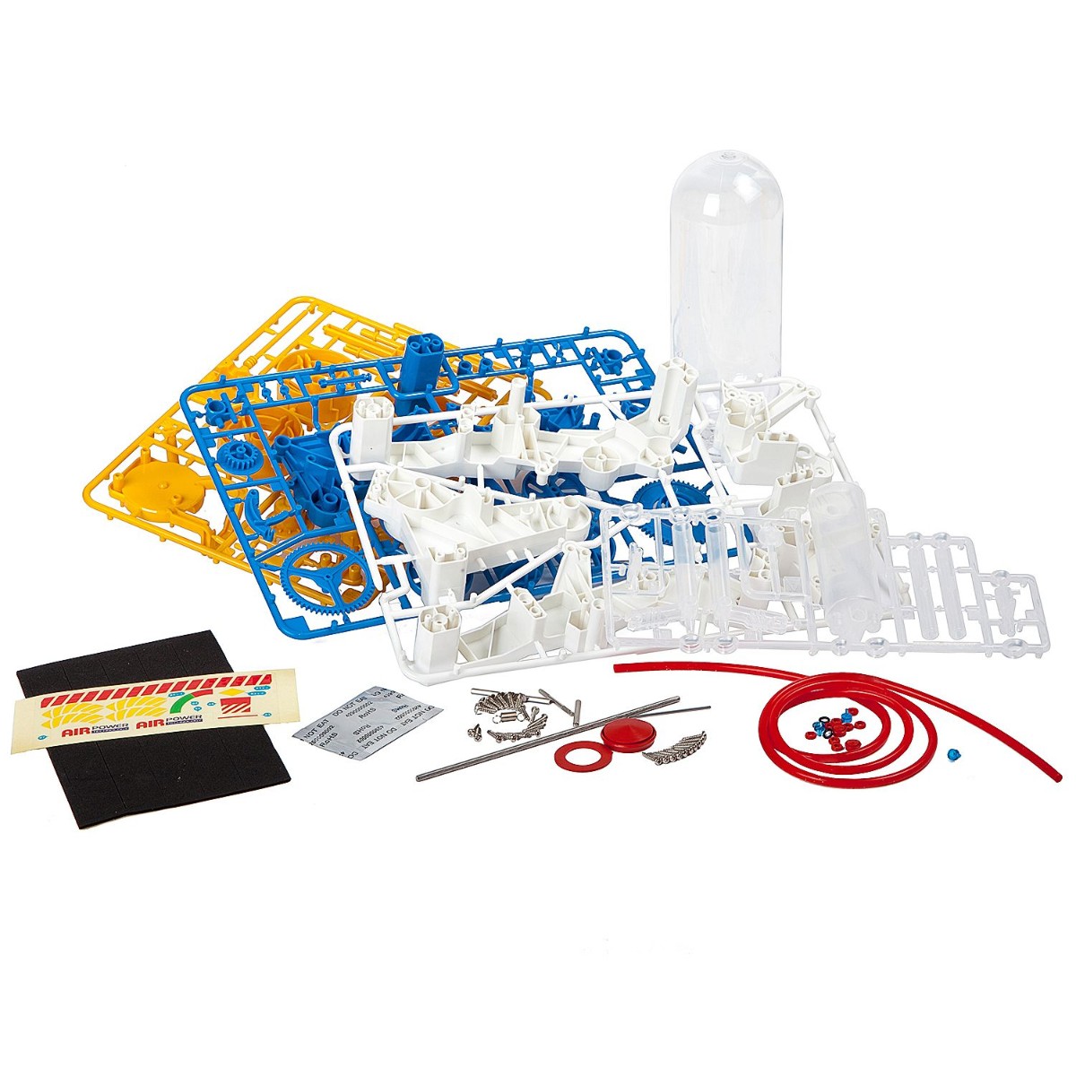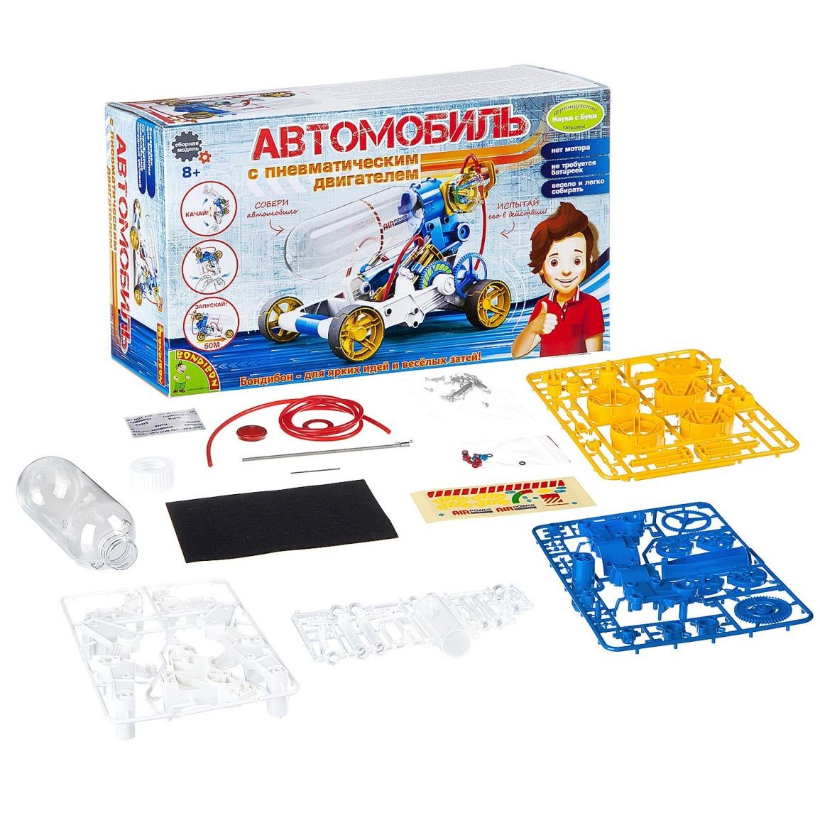 Попадите в будущее, не выходя из дома! Узнайте, каким в скором времени будет мир техники и транспорта c этим набором от Bondibon! Воздух в качестве горючего, вполне вероятно, сможет заменить бензин. Теперь ваш ребенок может претворить эту идею в жизнь и получить ценные сведения о двигателе, приводимом в действие сжатым воздухом. Машинка – скоростная, и ей не требуется батареек или специальных погодных условий – нет ничего, что препятствовало бы ее использованию. Автомобиль с пневматическим двигателем разработан не только с учетом его безвредности для экологии, но его также весело и легко собирать! Игра с этим набором поможет ребенку усвоить полученные в школе знания или пополнить их новыми. В наборе есть всё необходимое для сбора автомобиля. ДДополнительно могут понадобиться: бокорезы, крестовая отвертка, молоток, ножницы.