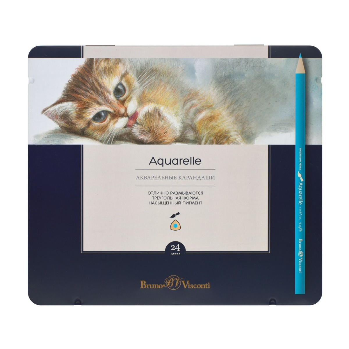 Карандаши цветные 24 цв акварел BV Aquarelle треуг, мет. коробка