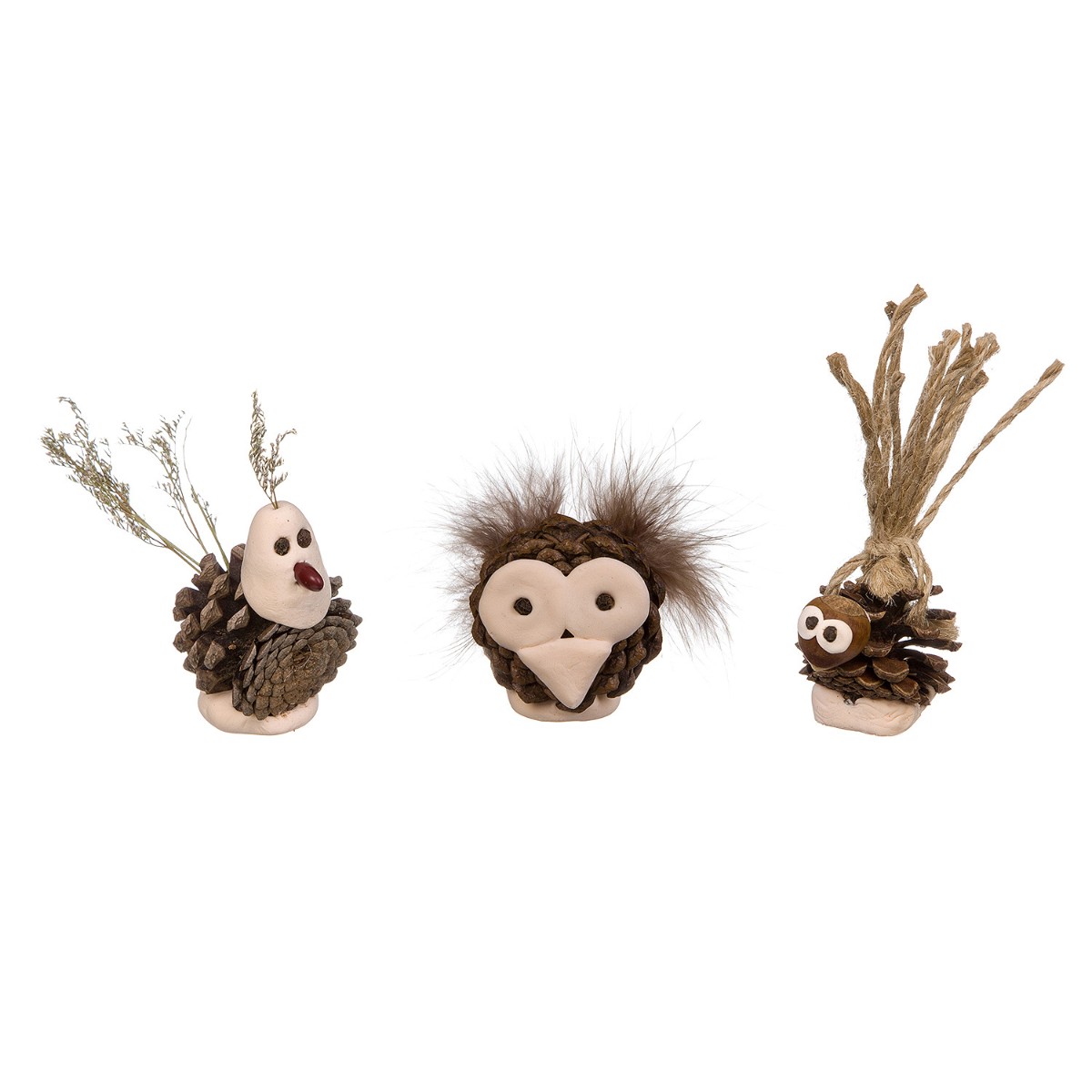 Развивает творческое начало, мелкую моторику, концентрацию внимания. Поделки из шишек – лучшие традиции осени! Это нужно знать: В теплом помещении шишки способны немного меняться по форме, т.е. они раскрываются. Чтобы зафиксировать изначальную форму, опустите шишку в раствор со столярным клеем на полминуты, после чего просушите. Если шишка изначально изменила свою форму, необходимо замочить ее в простой воде, затем обвязать веревкой и придать нужную форму, после чего просушить.