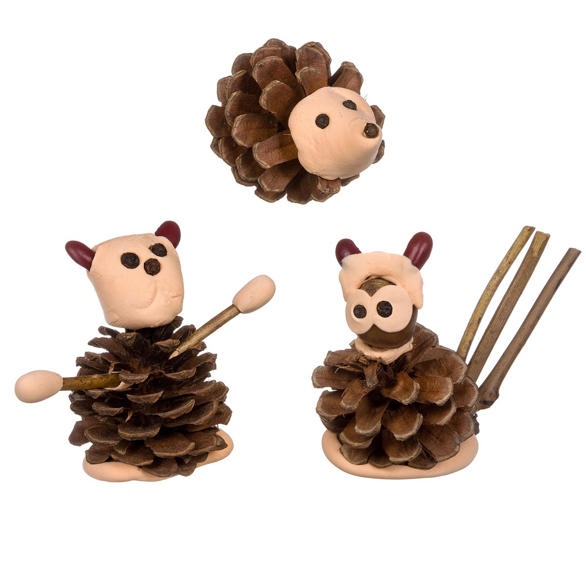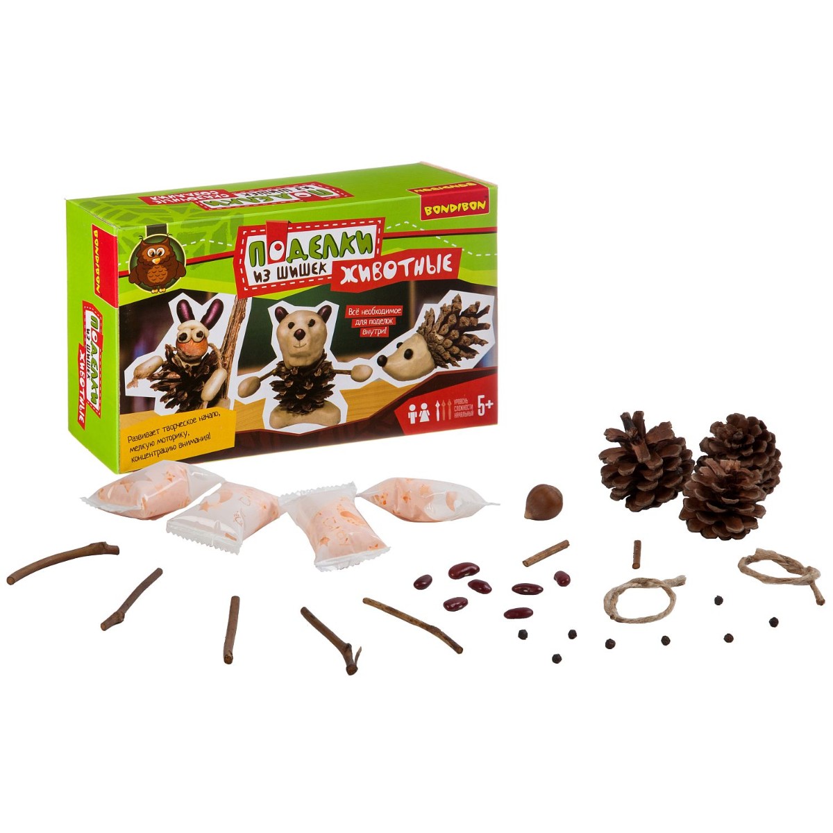 С творческим набором "Поделки из шишек" от Bondibon ребёнок узнает все о лучшей традиции осени - поделках из шишек! Они выглядят и ведут себя совсем как живые благодаря свойству шишек немного менять свою форму при изменении температуры. В теплом помещении шишка раскроется, а опустив ее в раствор со столярным клеем на пол минуты и просушив можно легко зафиксировать начальную форму. Если шишка изначально изменила свою форму, замочите ее в простой воде, обвяжите верёвкой и придайте нужную форму, а затем просушите. Ребёнку очень понравится играть с этими забавными существами!