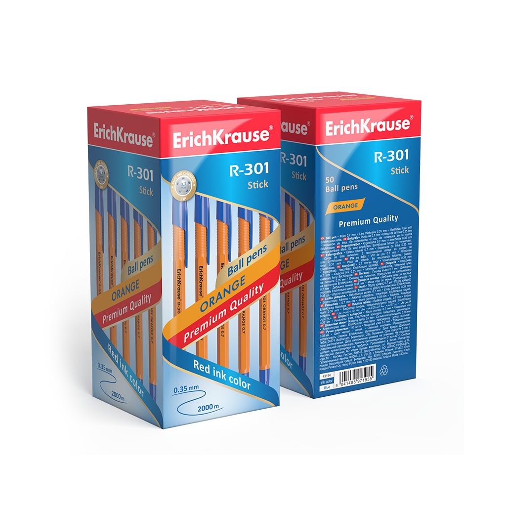 Ручка шариковая синяя EK R-301 Orange Stick оранж корпус 0.7мм