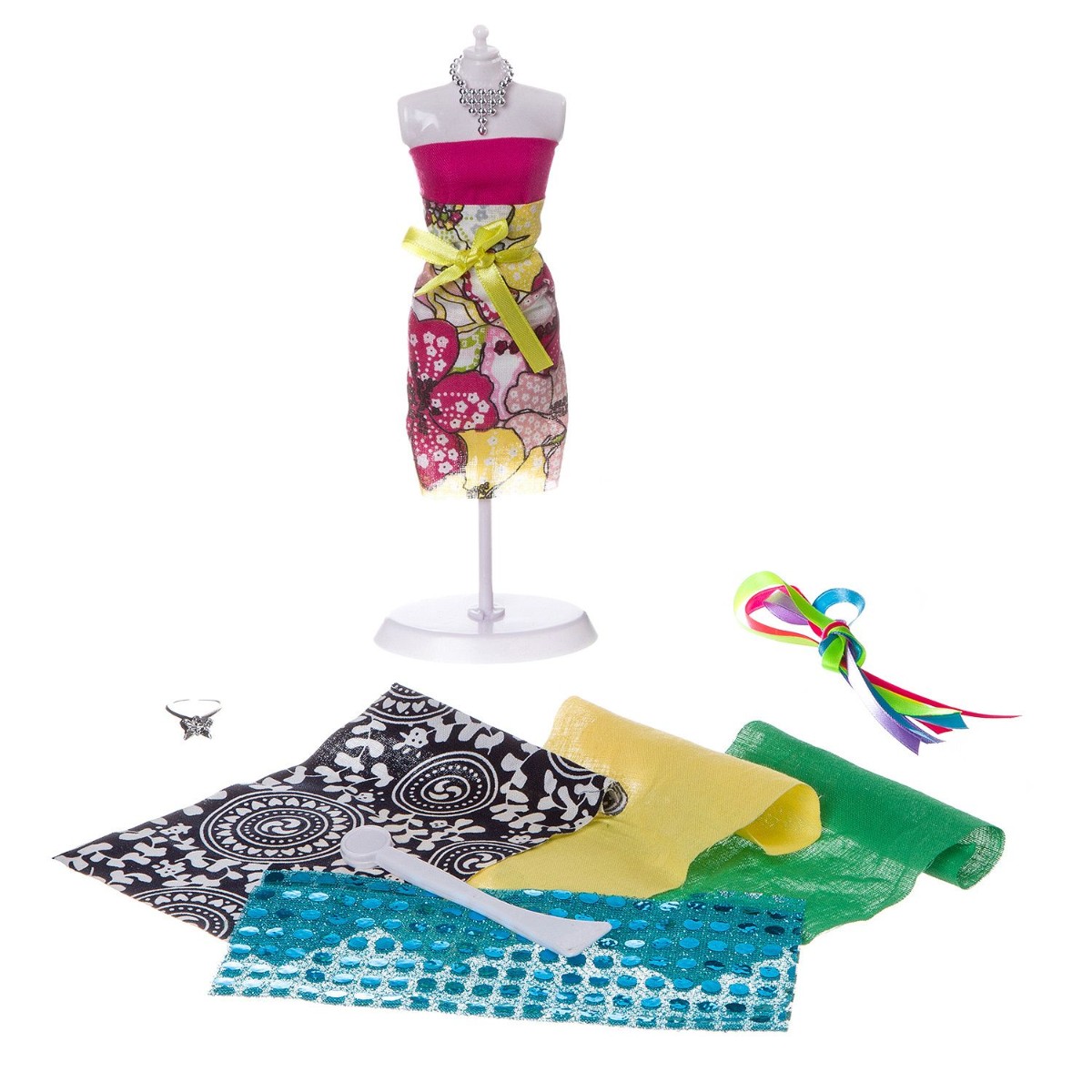 Все девочки обожают играть с куклами, одевать и переодевать их, рассматривать и коллекционировать кукольную одежду и аксессуары. А теперь есть потрясающая возможность самостоятельно делать платье для куклы, сделать его таким, каким хочется! Девочки смогут сшить наряды для любимой куклы также, как это делают настоящие дизайнеры-модельеры. В набор входят выкройки-лекала будущей одежды, манекен - для примерок, разнообразные ткани и украшения ленты, колье, пуговички, стразы, портновские иглы, наперсток и инструкция с основами швейного мастерства.