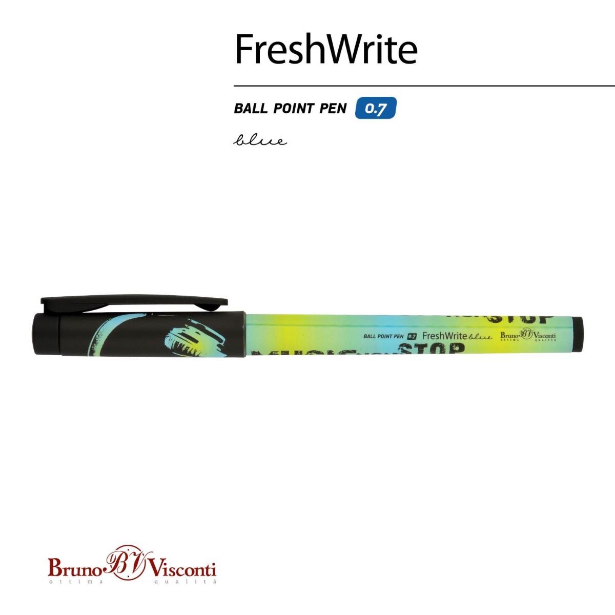 Ручка шариковая синяя BV FreshWrite Music blue 0.7 принт