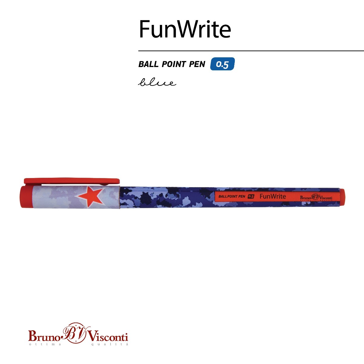 Ручка шариковая синяя BV FunWrite Military 0.5 принт