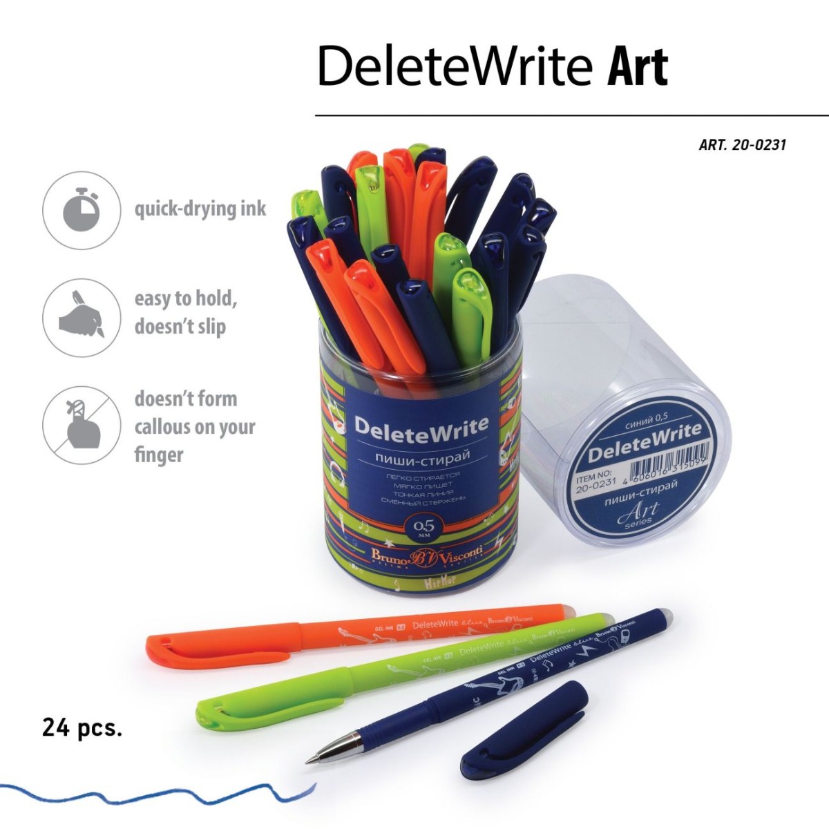 Ручка гелевая Пиши-стирай синяя BV Delete Write Art Музыка