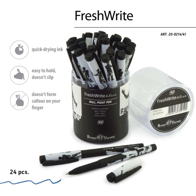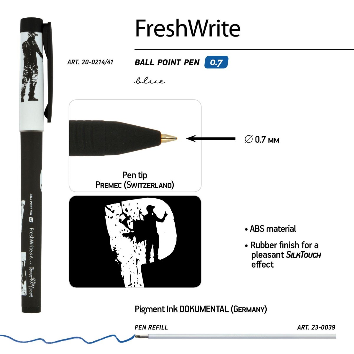 Ручка шариковая синяя BV FreshWrite RAP 0.7мм принт
